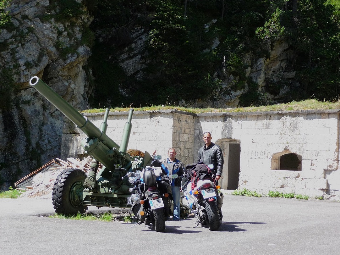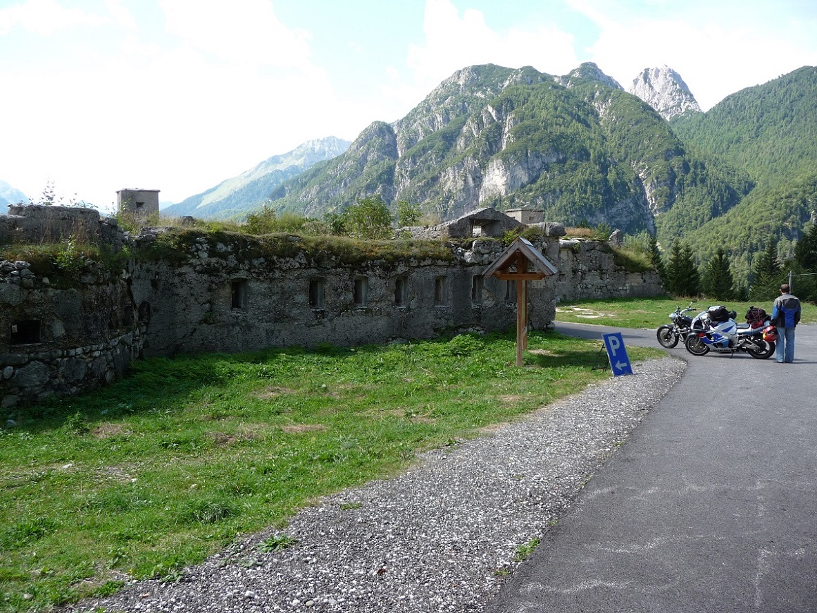 Paramos casi arriba del puerto, antes de la frontera, ya que desde allí había una vista aérea espectacular del lago y además estaban los restos de un fuerte austro-húngaro de mayor tamaño que el que había junto al lago, la batería de Sella-Predil. Está totalmente abandonado, pero se puede visitar por dentro, lo malo es que hay mucho escombro y basura.