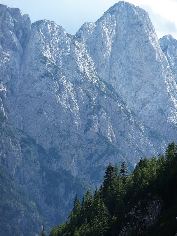 Y a partir de aquí, las montañas que vamos a recorrer ni siquiera llegan a los 3000 metros. En estos Alpes Cárnicos, su pico más elevado son 2780 metros, y en los Alpes Julianos que recorreremos por la tarde en Eslovenia, el Triglav, con 2864 metros, y que marca el final de la enorme cordillera de los Alpes. A partir de aquí ya se acabaron los glaciares, pero no os equivoquéis, estas montañas, como veréis en las fotos de este artículo, siguen siendo muy alpinas y abruptas, pareciendo mucho más altas de lo que en realidad son.