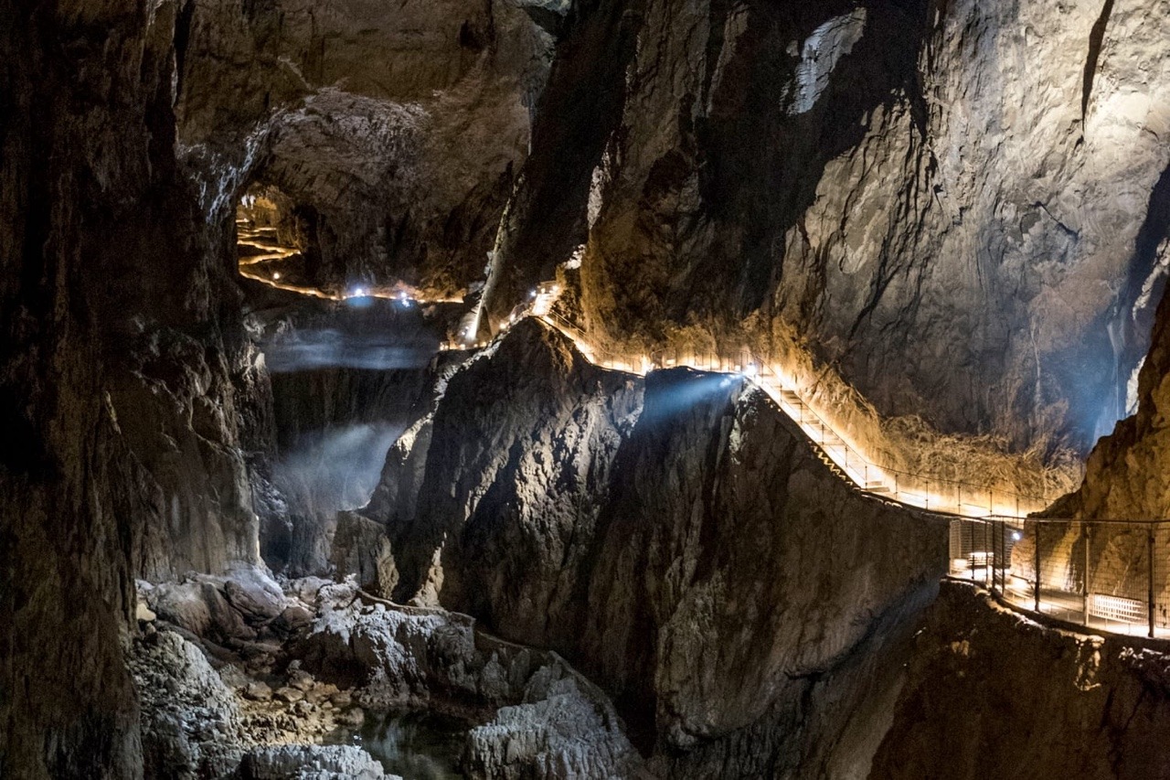 - La cueva de Škocjan nos gustó mucho, pero es un sitio en el solo puedes parar si tienes unas dos horas y media disponibles de tiempo, ya que es una visita larga, y guiada. Otro sitio muy fotogénico, en el que ya no paramos por falta de tiempo, es el castillo de Predjama, edificado en el interior de un hueco gigante en una pared rocosa.