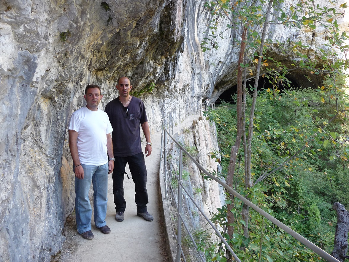 Fijáos arriba a la izquierda, el rio que ha tallado todo esto, que discurre por el fondo de la cueva. Desde la cueva ya estábamos cerca de la frontera con Croacia, donde hicimos una parada breve.