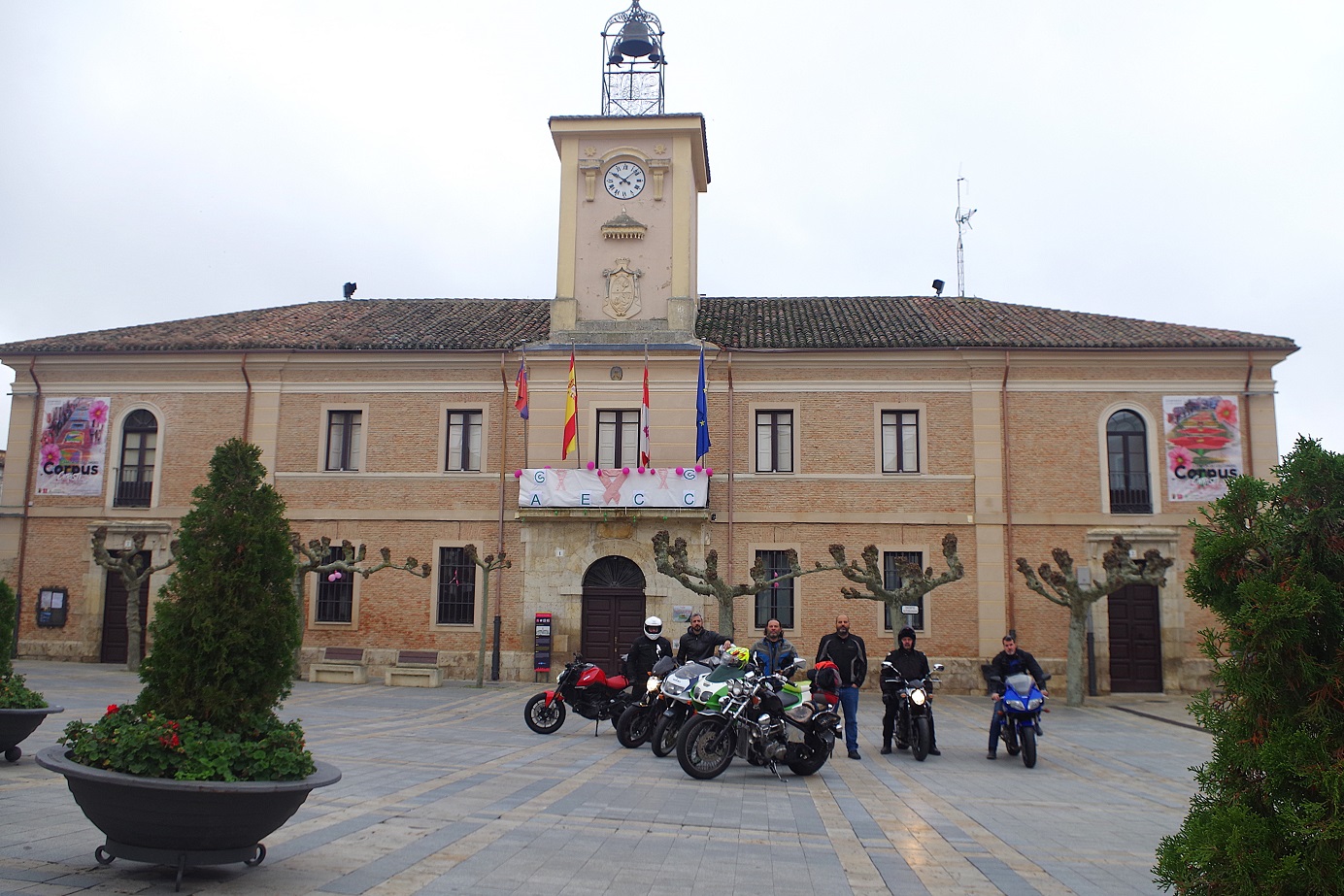 Y de Torquemada, directos ya al destino final de ese día, Carrión de los Condes, a solo 53 km ya. Dejamos las motos en la misma plaza mayor, ya que nuestro hostal estaba allí mismo (de hecho, ese es su nombre, hostal Plaza Mayor). Un sitio barato y funcional, y muy bien situado. Una vez instalados, salimos a cenar, cosa que hicimos en un restaurante de la misma plaza. Allí nos estaba esperando mi primo, que vive en un pueblo al lado de Carrión y se había acercado a cenar con nosotros.