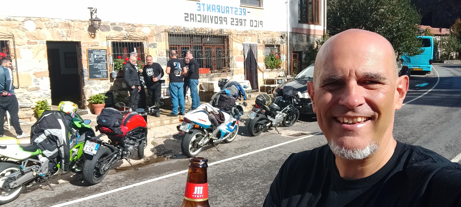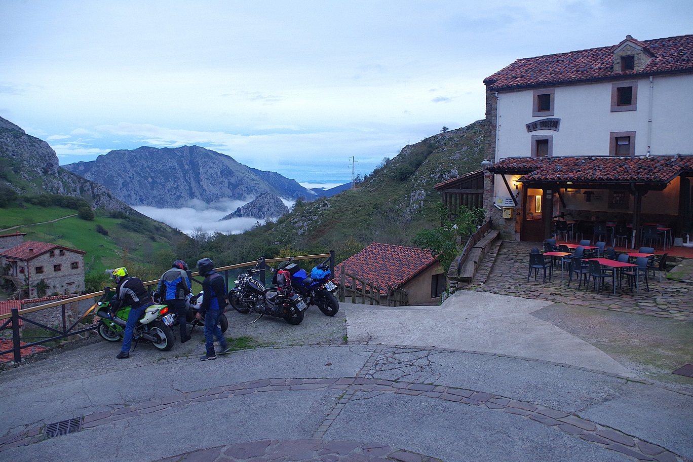 Y llegamos a Tresviso, donde el que parecía ser el único bar del pueblo nos estaba esperando con los brazos abiertos y cerveza bien fria, al lado de un mirador donde se seguía viendo el mar de nubes, esta vez hacia la zona del desfiladero de la Hermida, que tendríamos que hacer al día siguiente para volver a tierras castellanas. Aparcamos las motos y nos sentamos en la terraza que nos tenían preparada, como si nos estuvieran esperando. El día iba a morir mientras nos tomábamos esa cerveza, la vuelta a Sotres ya sería de noche.