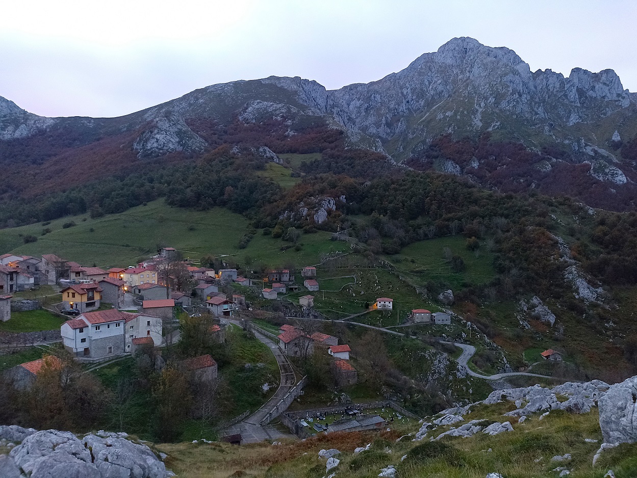 Ese día tocó madrugar, quedamos a las 8:30 de la mañana para desayunar en el hostal. Yo me levanté antes porque me apetecía dar un paseo por el pueblo, cuando aún estaba amaneciendo. Subí por las callejuelas de Sotres hasta la parte superior del pueblo, desde donde hay buenas vistas del pueblo, desperezándose, y las montañas que lo rodean.