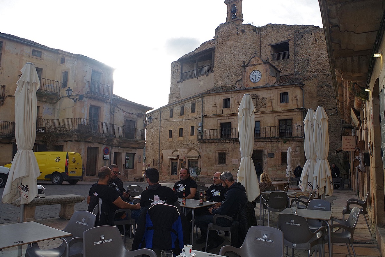 Al llegar a Sepúlveda, uno de los pueblos más bonitos de Segovia, aparcamos en la misma plaza de España y estuvimos allí un rato tomando una cerveza con la luz de la tarde. Esta plaza suele ser muy bulliciosa, especialmente los fines de semana, pero ahora estaba vacía, prácticamente solo estábamos nosotros, como podéis ver en las fotos de abajo.