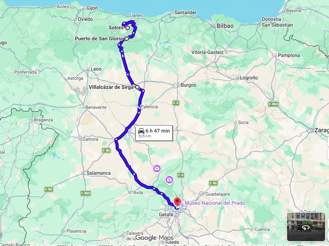 - Día 3: Desde Sotres hasta Madrid, parando en el mirador de Camarmeña del Naranco de Bulnes, el puerto de San Glorio, Portilla de la Reina y Villalcázar de Sirga. Unos 505 km.