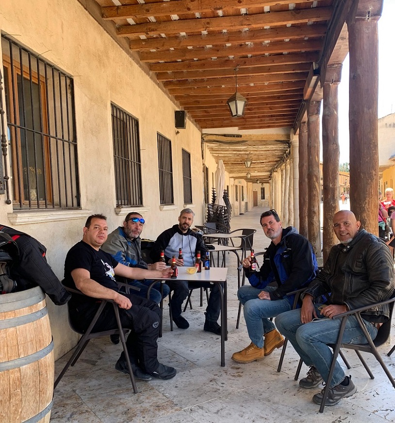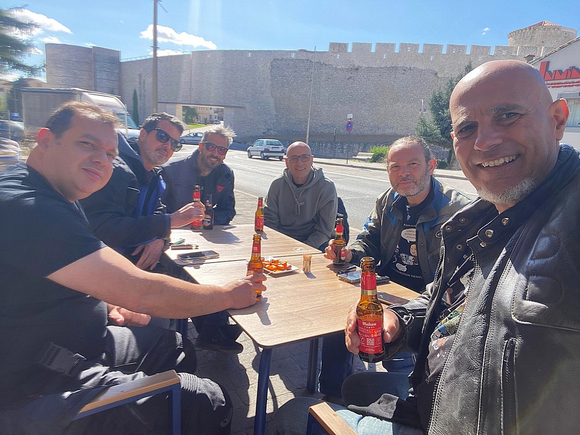 Solo íbamos a hacer en todo el día un pequeño tramo de autovía, e iba a ser justo al principio, hasta el desvio a Cuéllar que hay pasado el puerto de Somosierra. La primera parada fue justamente en el restaurante que hay en la cima del puerto, para desayunar unos magníficos pinchos de tortilla. Abajo a la izquierda, en la gasolinera de Cotos, y a la derecha, en el bar de Somosierra.