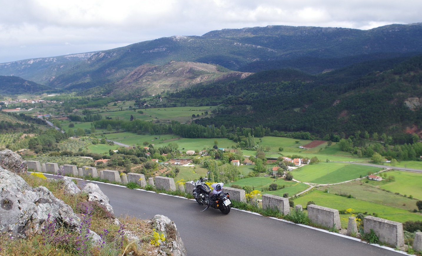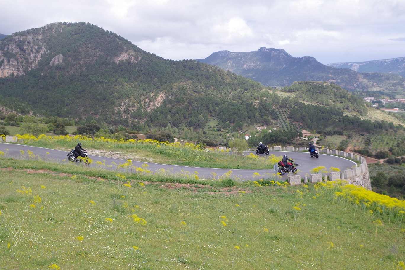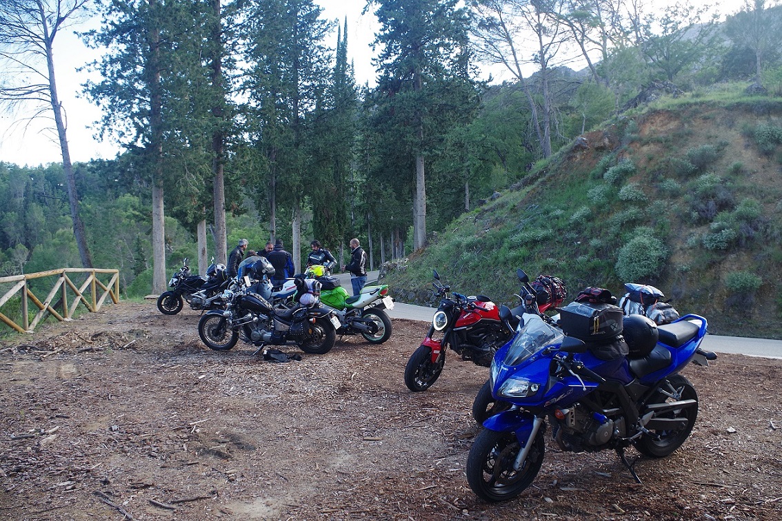 Y de nuevo dejó de llover. Esta vez sí que parecía que iba más en serio, ya que incluso se empezó a ver tímidamente el sol. De nuevo a las motos, había que aprovechar. Estábamos ya muy cerca de la entrada a la sierra de Cazorla, Segura y las Villas, que teníamos que atravesar completamente de norte a sur para llegar al alojamiento que teníamos reservado. Abajo, fotos bajando desde Riopar Viejo hacia el valle.