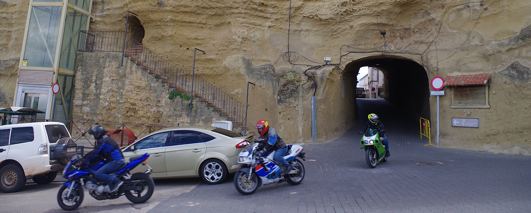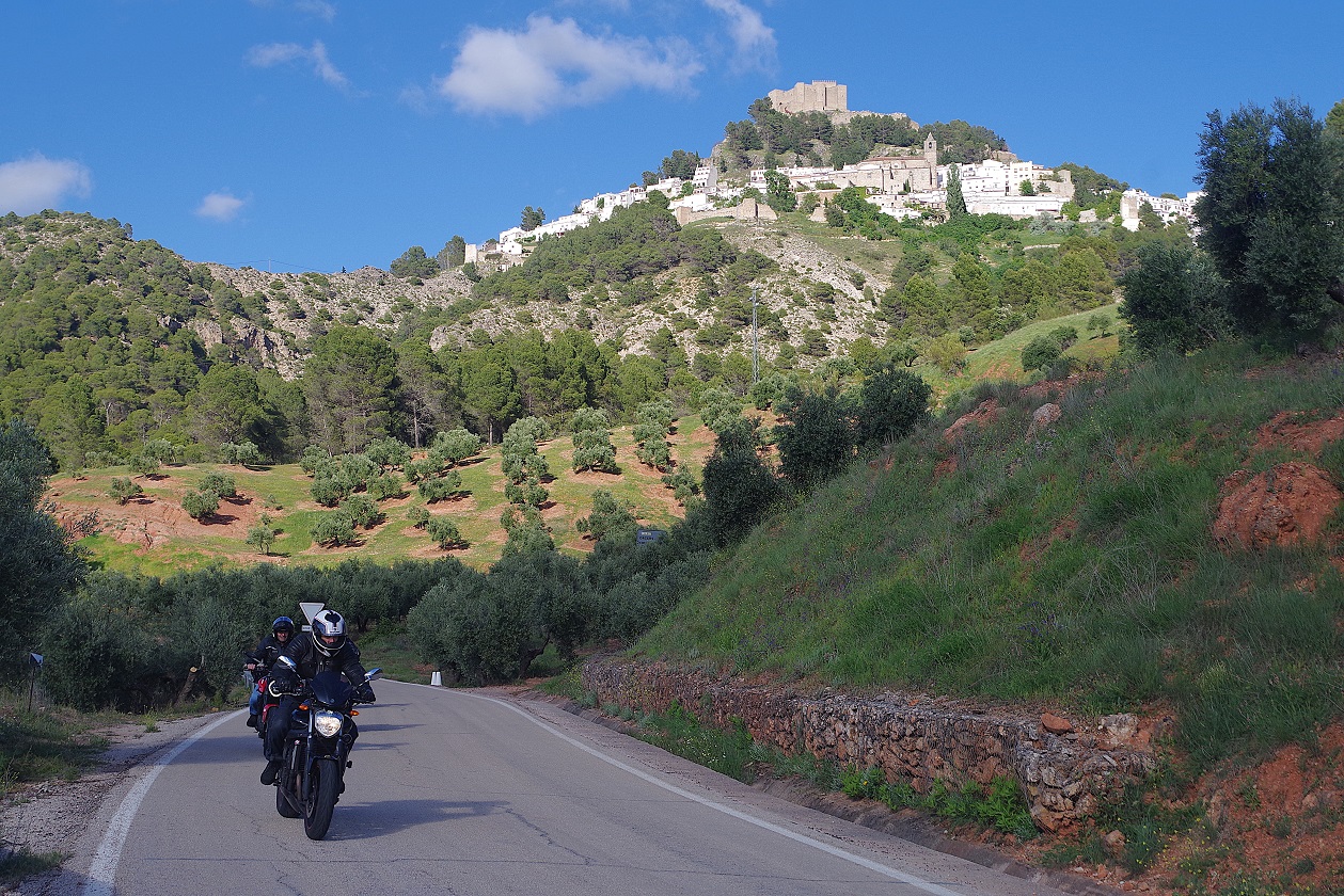 Desde el mirador ya estábamos solo a 14 km de nuestro destino final del día, el pueblo de Cazorla, donde habíamos reservado en el albergue, situado en una casona señorial antigua. Antes, pasamos por La Iruela, un pueblo más pequeño que también habría sido una muy buena opción para dormir. Lo cierto es que Cazorla no nos gustó mucho, demasiado grande para nosotros, que nos suele gustar dormir en pueblos más pequeños. Aparcar las motos en el centro, en la zona de callejuelas donde está el albergue, fue complicado.
