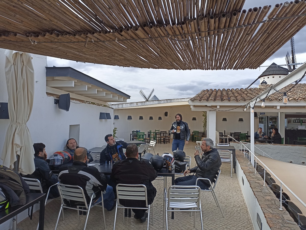 Y después de las fotos, un poco de charla, cerveza y queso manchego en la fantástica terraza del bar-restaurante que hay junto a los molinos.
