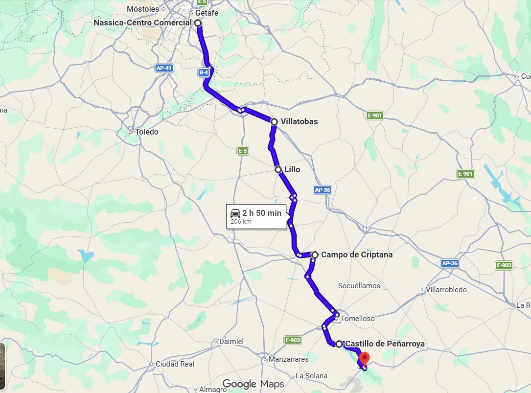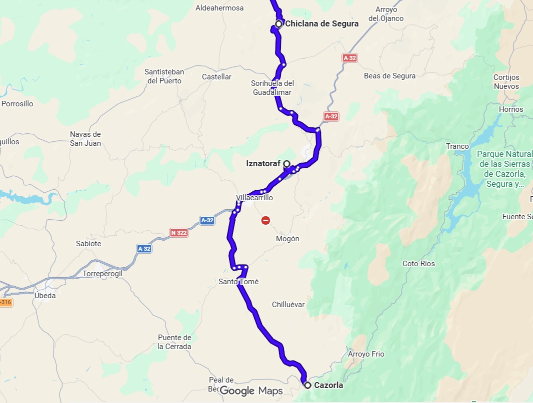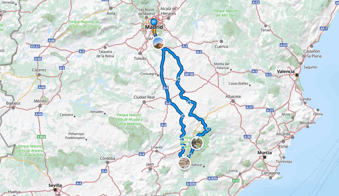 - Día 3: Desde Cazorla hasta Madrid, parando en Iznatoraf, Chiclana de Segura, Sierra Morena y Villanueva de los Infantes para comer. Unos 360 km.
