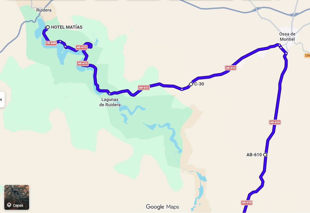- Día 1: Desde Madrid hasta las lagunas de Ruidera, parando en los molinos de Campo de Criptana. Unos 206 Km.