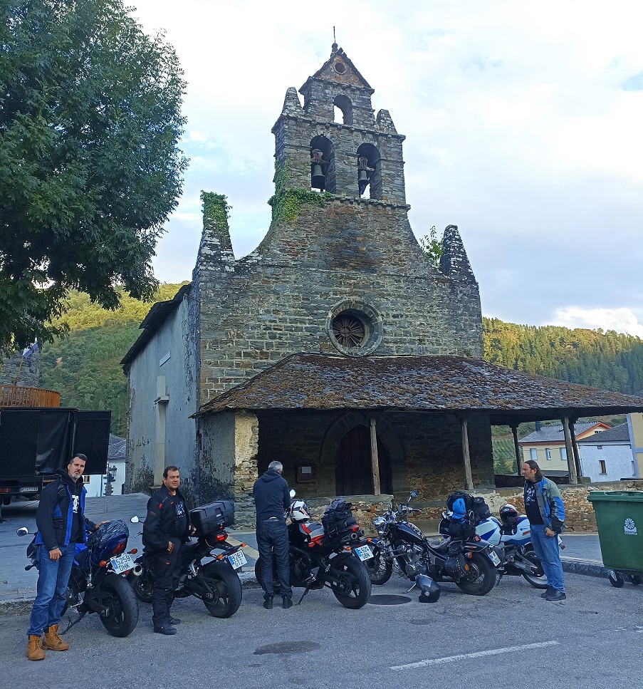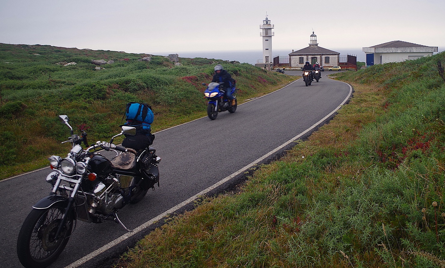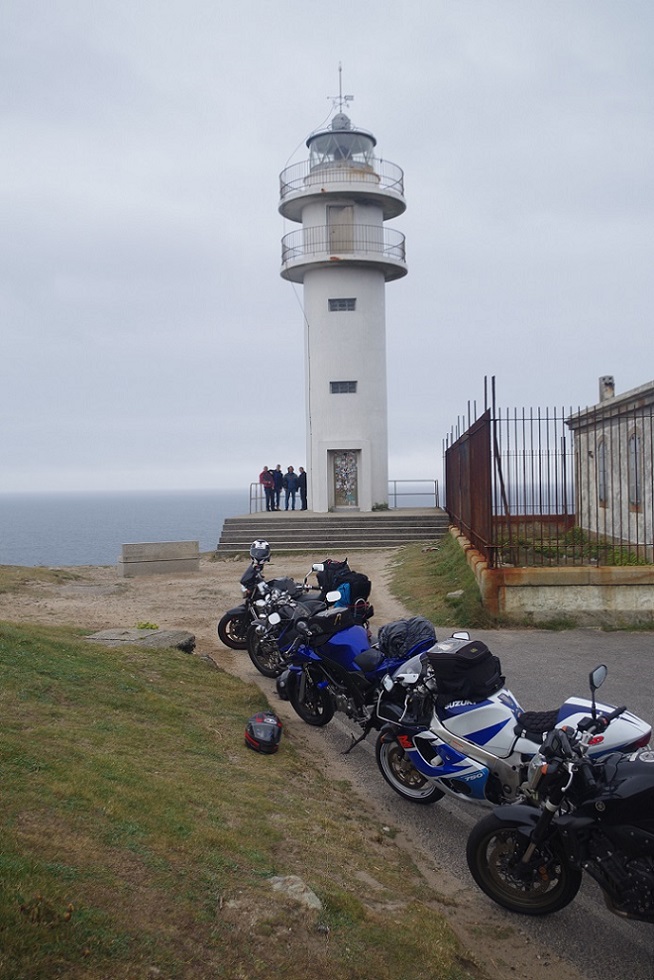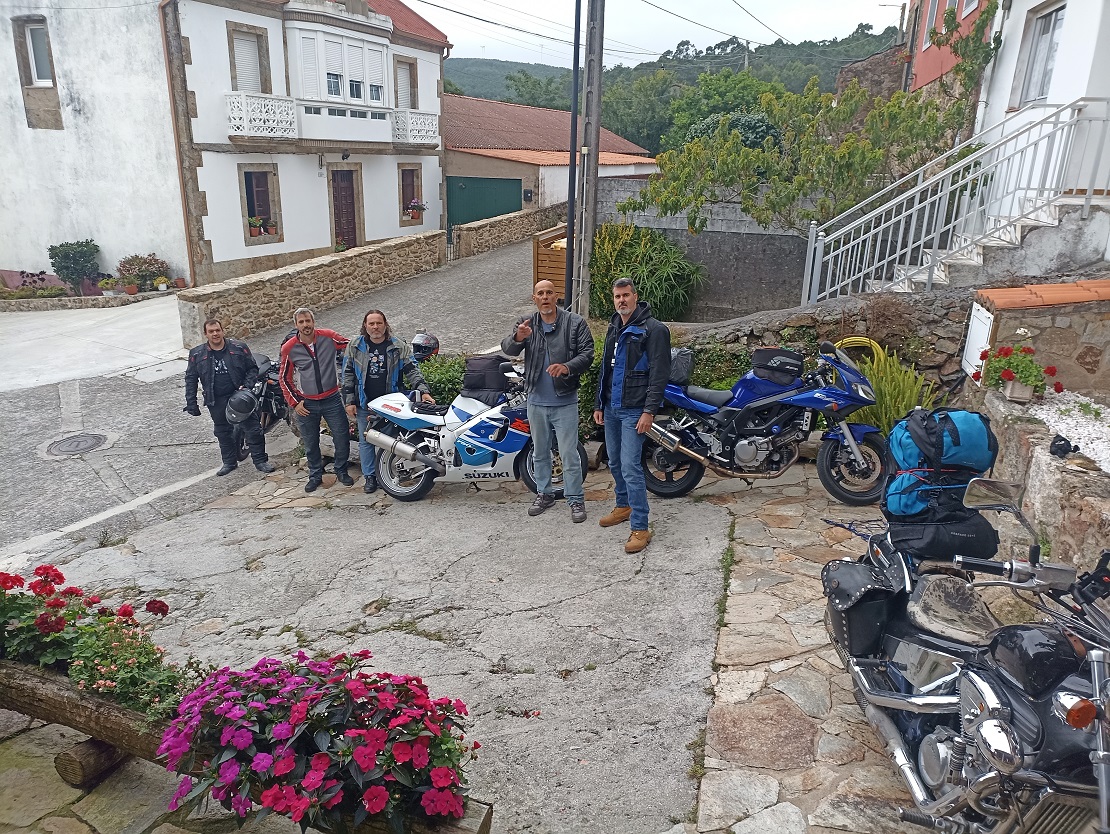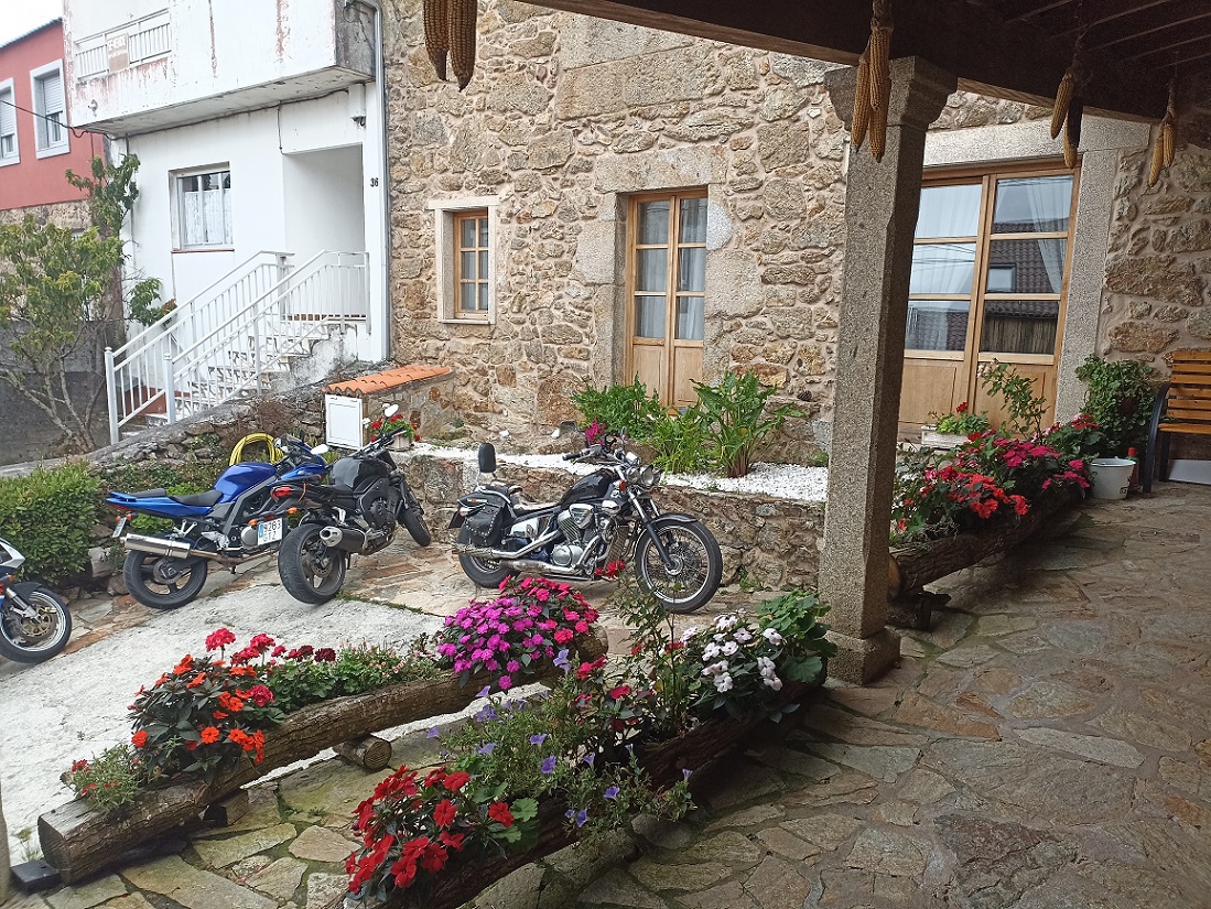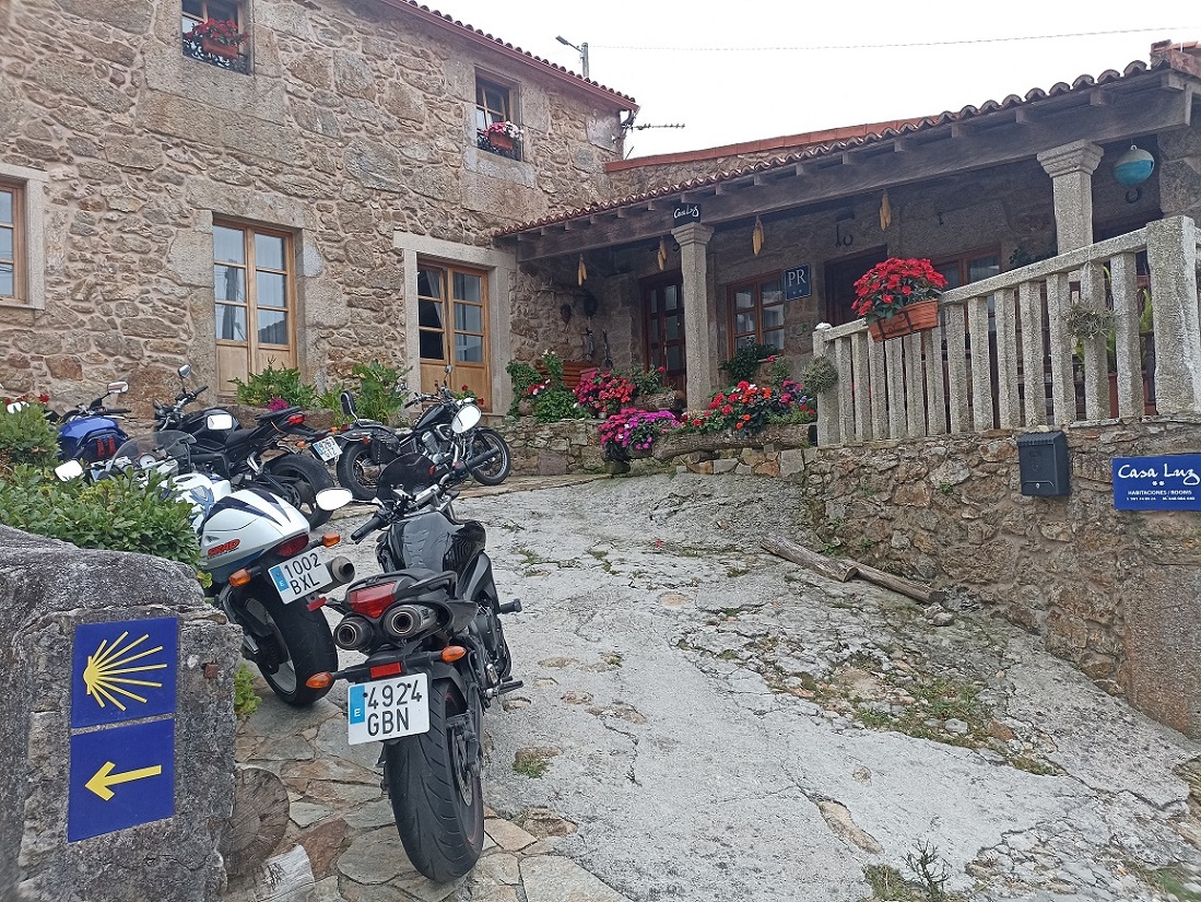 Abajo, fotos de las motos en la puerta de nuestro alojamiento, casa Luz. Un sitio con mucho encanto, donde dormimos y desayunamos muy bien. Lires está en el fondo de una pequeña ria, y hay un camino que lleva hasta la playa, pero no teníamos tiempo. Después de desayunar, nos pusimos en marcha que teníamos un largo día por delante.