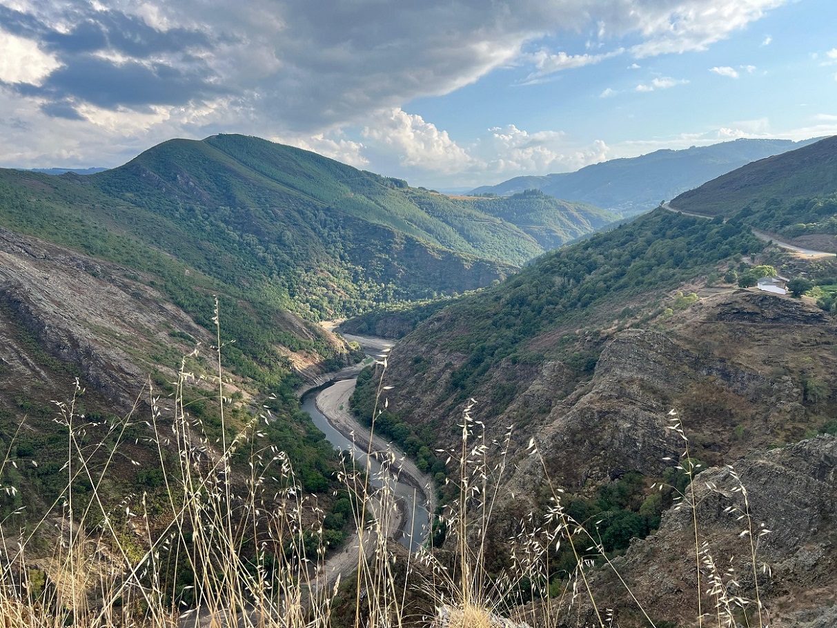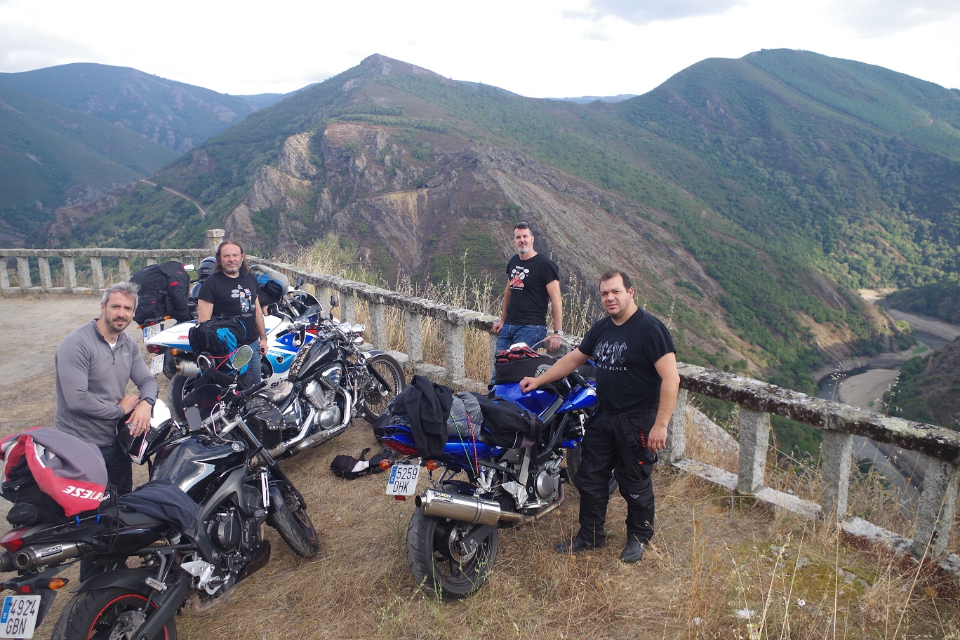 A partir de aquí, la ruta ya es totalmente de montaña. Al poco de dejar Castroverde atrás, subimos un pequeño puerto de montaña, Alto da Fontaneira, donde hicimos una breve parada (foto de abajo a la izquierda). Al pasar A Fonsagrada, el terreno se vuelve aún más montañoso y espectacular. En la zona en que cambiamos de Galicia a Asturias hacemos una parada en un mirador sobre el valle del rio Navia, que son las otras tres fotos de abajo. Toda esta carretera desde A Fonsagrada es muy espectacular para hacer en moto, y muy solitaria también.