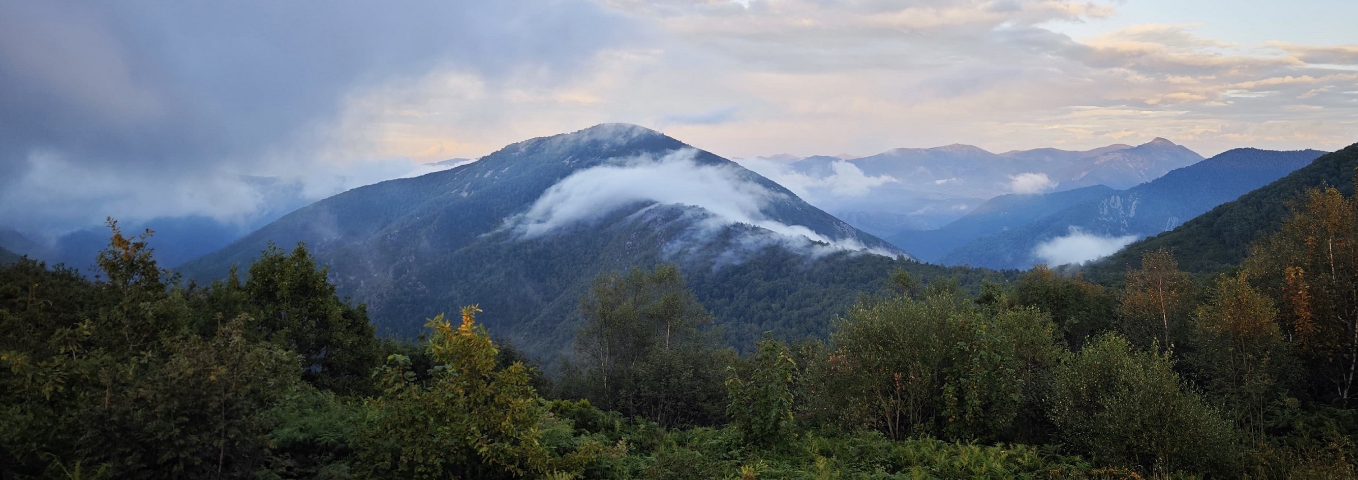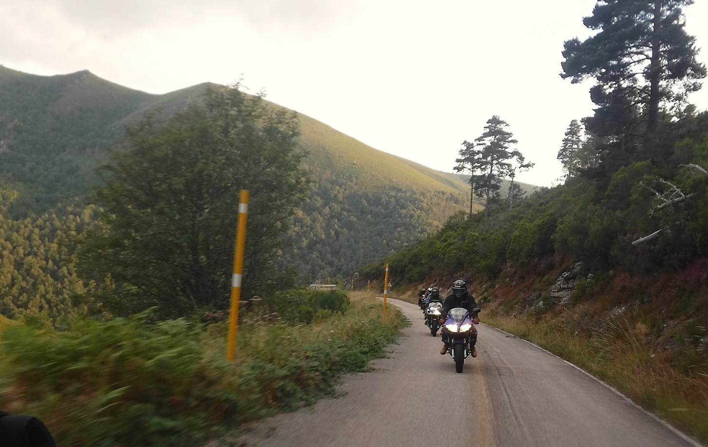 Si la carretera hasta ahora era muy bonita, a partir de San Antolín es la leche, un auténtico espectáculo de la naturaleza. La carretera va subiendo entre curva y curva a través de espesos robledales. No sería raro encontrarnos un oso tras alguna de esas curvas, ya que la carretera atraviesa la reserva natural de Muniellos, que es una de las zonas de España con mayor densidad de osos. Hay bastante sitios donde merecería la pena parar a contemplar el paisaje, pero seguimos subiendo y hacemos una primera parada cuando nos queda ya menos de un km para la cima.