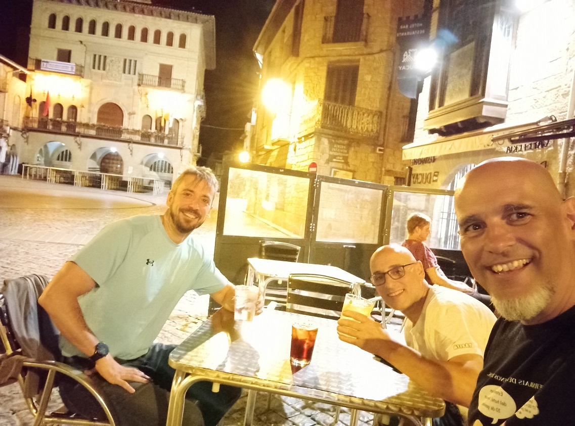 Abajo, otra foto sacada desde nuestra habitación triple. La verdad es que el hostal estaba muy bien situado, un sitio muy recomendable y a bien precio para dormir en Olite. Salimos a cenar, y después como es tradición, una copa en terraza, en este caso en la plaza del ayuntamiento.