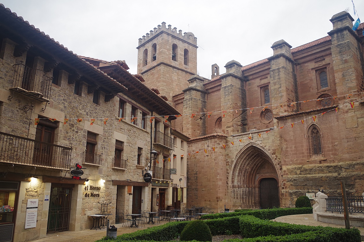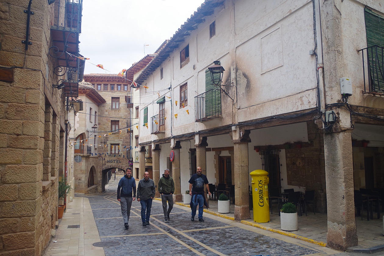 Juan madrugó y salió antes que nosotros ya que él volvía a su casa en Barcelona. Los demás disfrutamos de un fantástico desayuno en el hotel, que la verdad es que estuvo muy bien. Antes de dejar el pueblo, dimos un pequeño paseo, pasando por la plaza de la iglesia donde estuvimos la noche anterior, ahora con luz, y subiendo un poco más hasta el castillo, el cual rodeamos para alargar un poco el paseo. Mora de Rubielos es un pueblo bastante bonito.