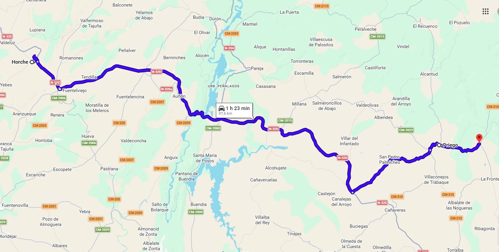 - Día 1: Desde Madrid hasta Cañamares, parando en Horche y Priego. Unos 173 Km. desde Madrid