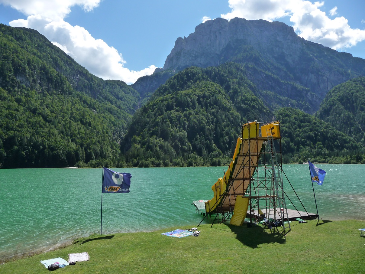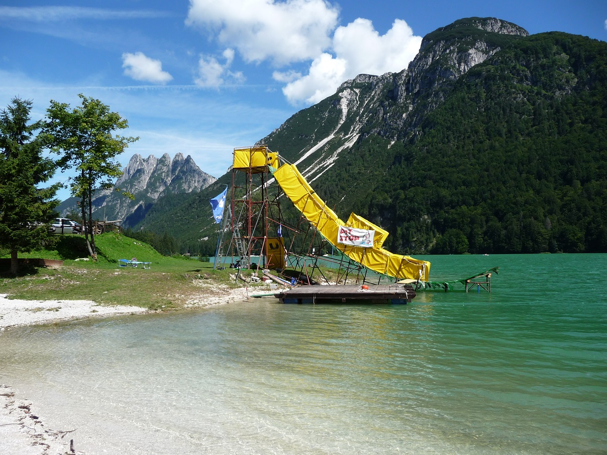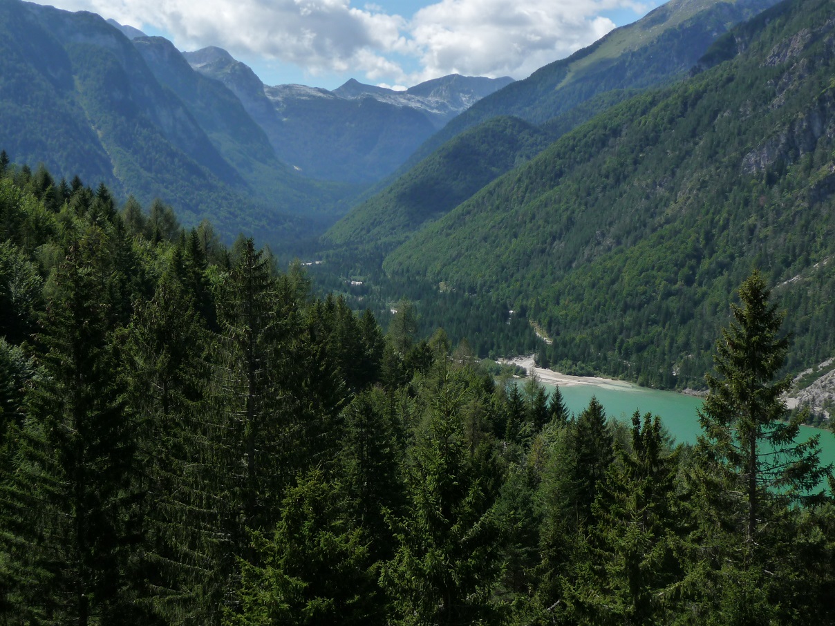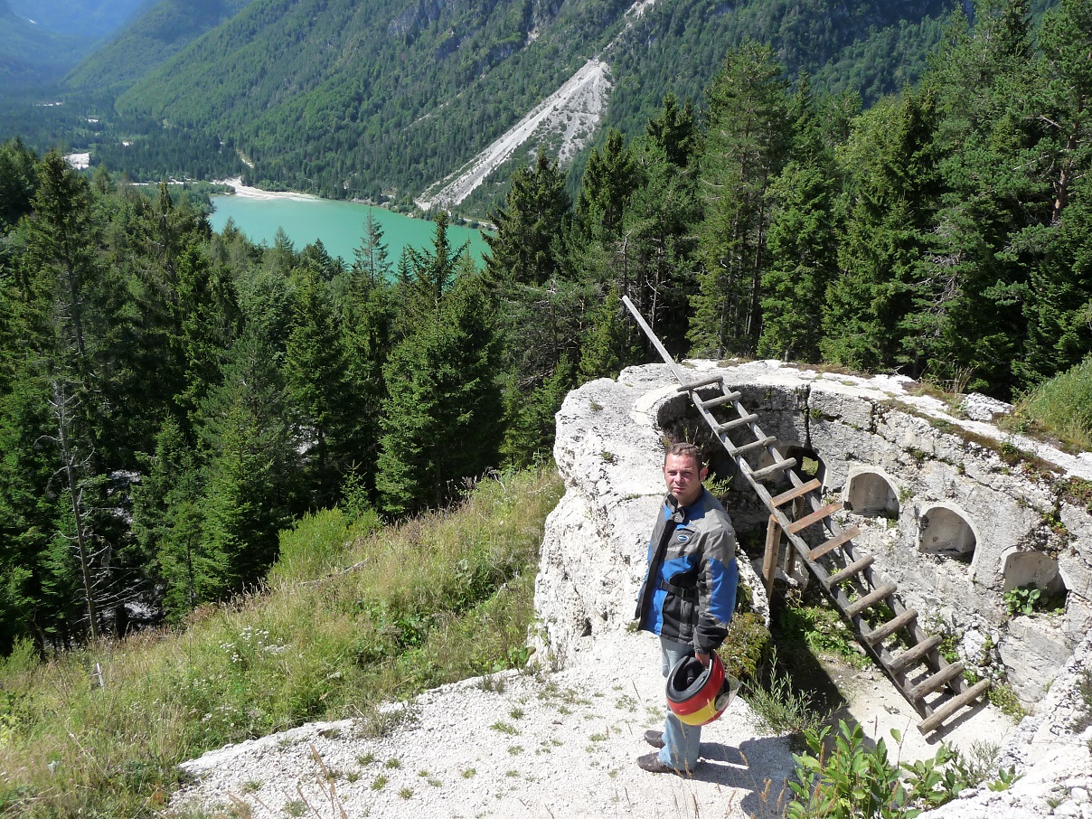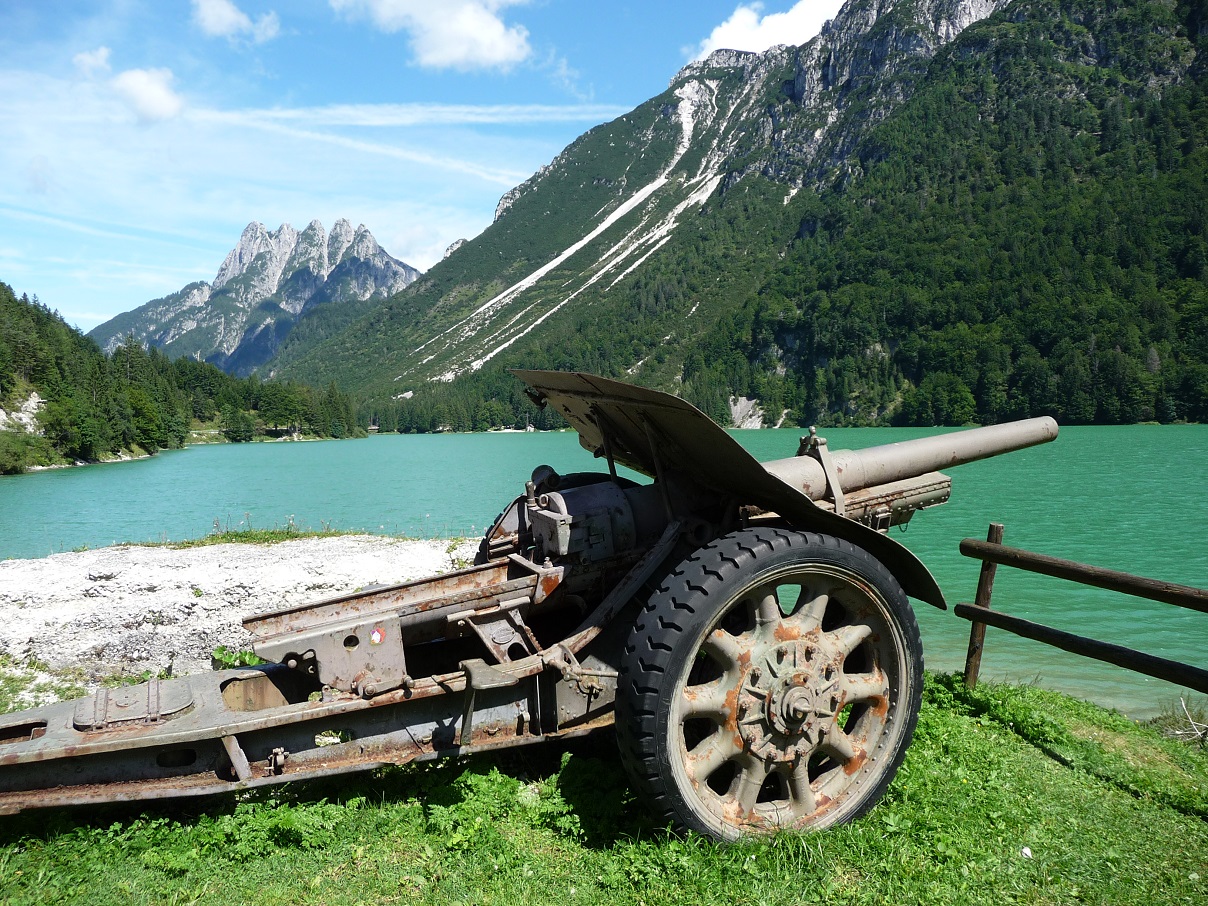 Se trata de un lago natural, de unas aguas increiblemente azules, rodeado por ese paisaje salvaje y soberbio de montañas y bosques. Junto al lago están las ruinas de una antigua fortificación de la I guerra mundial, y dos cañones antiguos. Este puesto artillero fue construído por el imperio austro-húngaro entre 1895 y 1897 cuando esta zona pertenecía al imperio, hoy en territorio italiano. Un sitio increible.