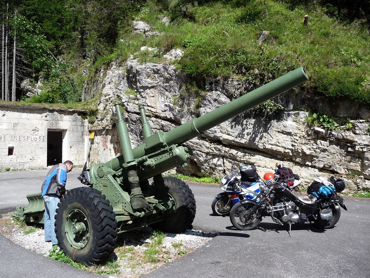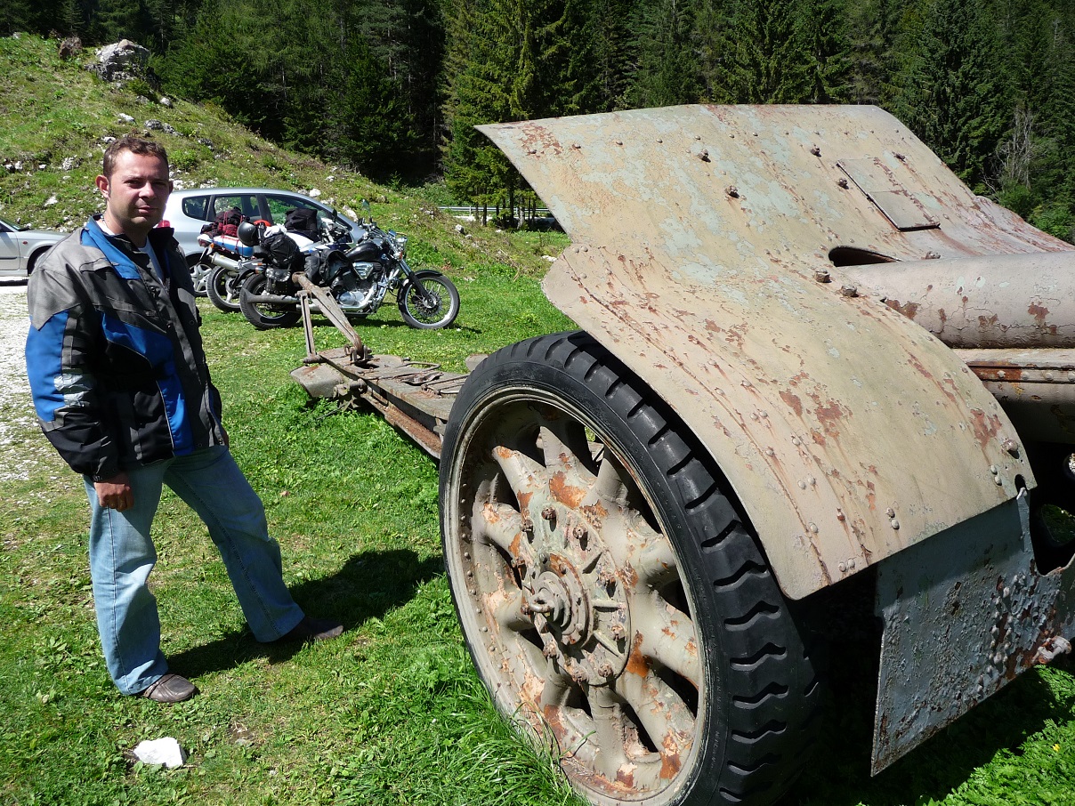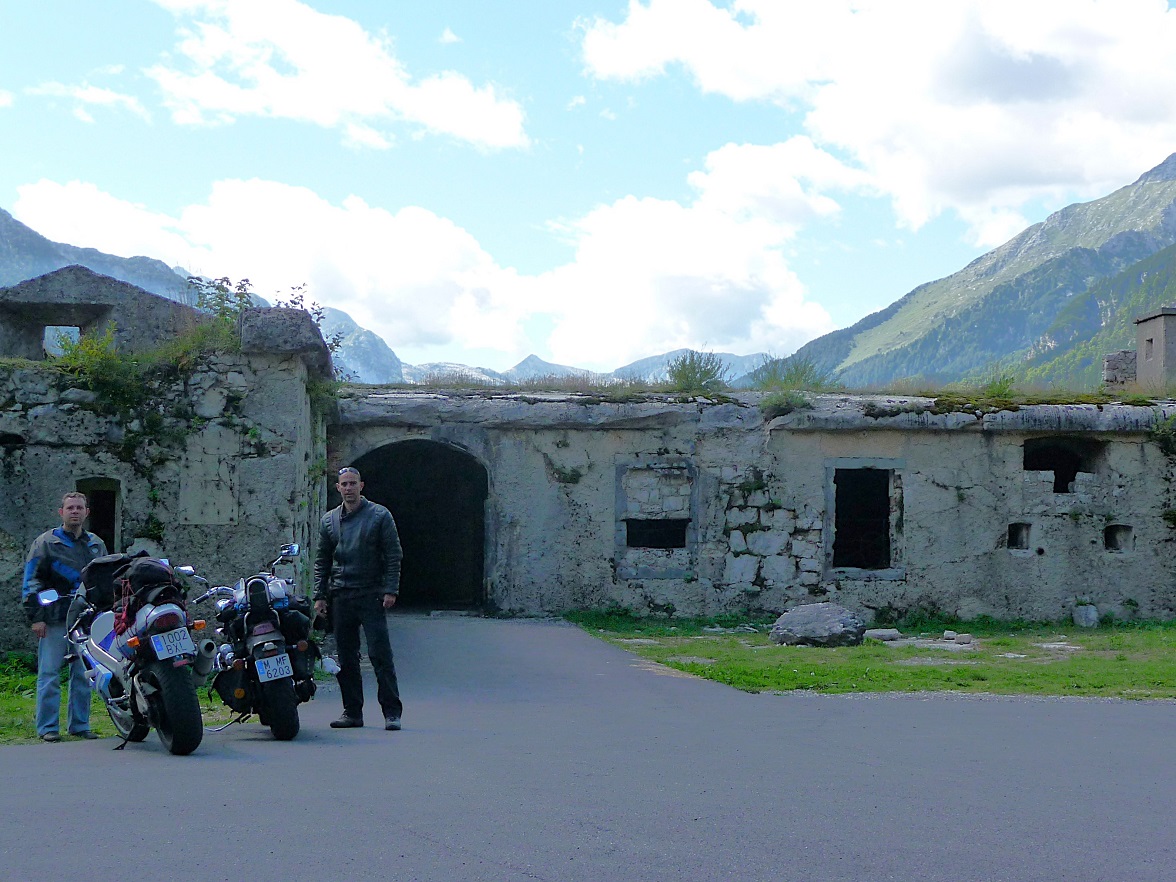 Paramos casi arriba del puerto, antes de la frontera, ya que desde allí había una vista aérea espectacular del lago y además estaban los restos de un fuerte austro-húngaro de mayor tamaño que el que había junto al lago, la batería de Sella-Predil. Está totalmente abandonado, pero se puede visitar por dentro, lo malo es que hay mucho escombro y basura.