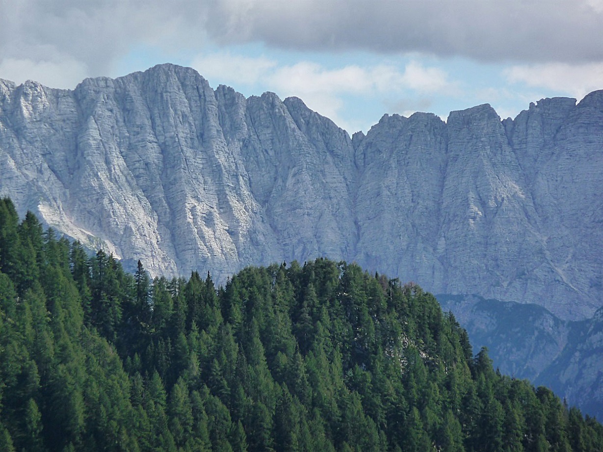 Y a partir de aquí, las montañas que vamos a recorrer ni siquiera llegan a los 3000 metros. En estos Alpes Cárnicos, su pico más elevado son 2780 metros, y en los Alpes Julianos que recorreremos por la tarde en Eslovenia, el Triglav, con 2864 metros, y que marca el final de la enorme cordillera de los Alpes. A partir de aquí ya se acabaron los glaciares, pero no os equivoquéis, estas montañas, como veréis en las fotos de este artículo, siguen siendo muy alpinas y abruptas, pareciendo mucho más altas de lo que en realidad son.