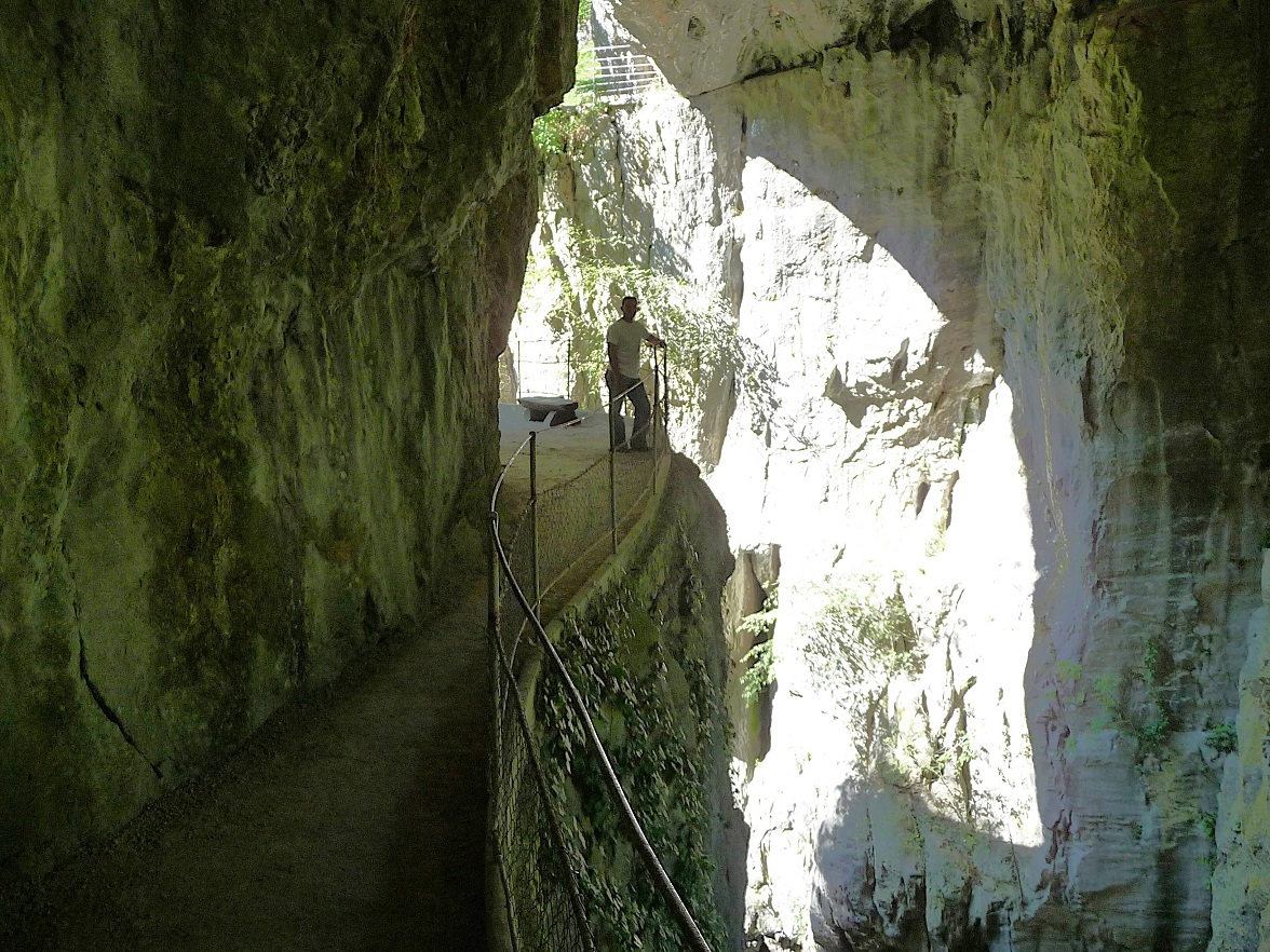 Y las fotos de abajo, que están sacadas de internet, con lo mejor de la visita, el recorrido por ese inmenso mundo subterráneo. El punto más espectacular es un puente que cruza el cañón del rio, a una altura de 45 metros sobre el fondo.