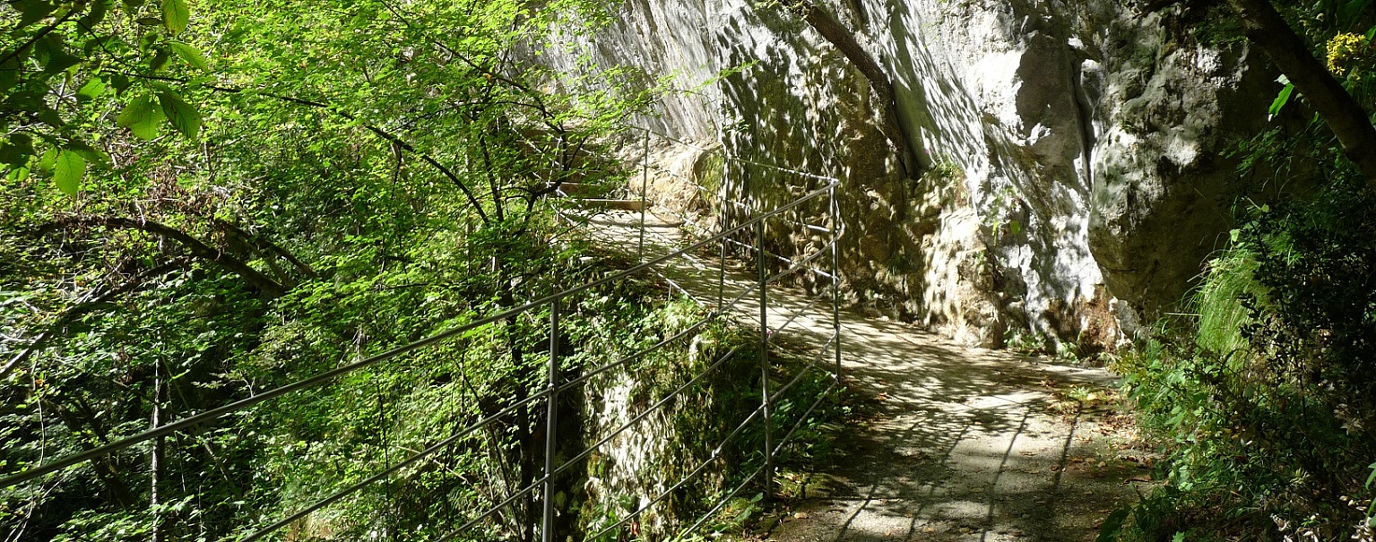 Dejamos las motos junto a la recepción de visitantes. La visita es guiada, en grupo, y tenemos que esperar un poco a que llegue el guía. Nosotros no hicimos reserva previa ni nada, pero claro, esto fue en el 2008, no se ahora si será necesario. Hay que hacer una aproximación caminando hasta la cueva, en ese paseo sí se pueden hacer fotos. El recorrido total, entre el paseo inicial de aproximación y luego dentro de la cueva, es de unos 3 km, y se tarda como hora y media. Abajo, fotos en esa aproximación, que es un paseo muy agradable por un entorno muy bonito.