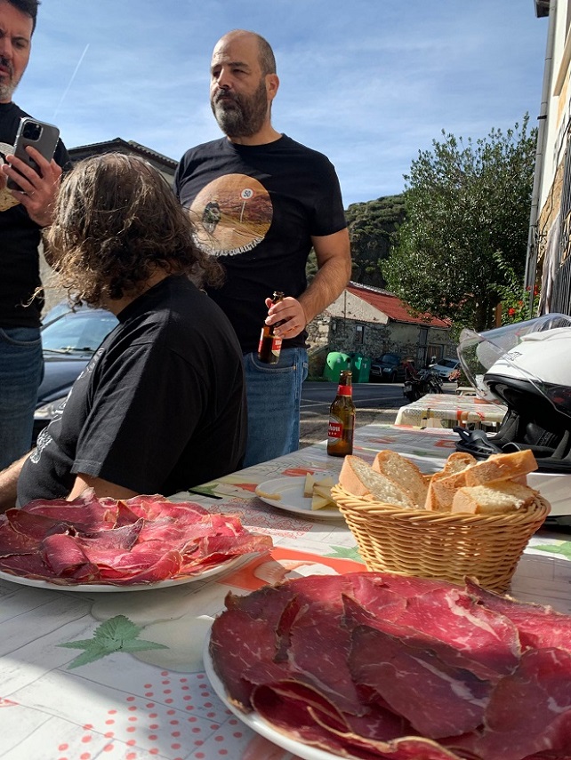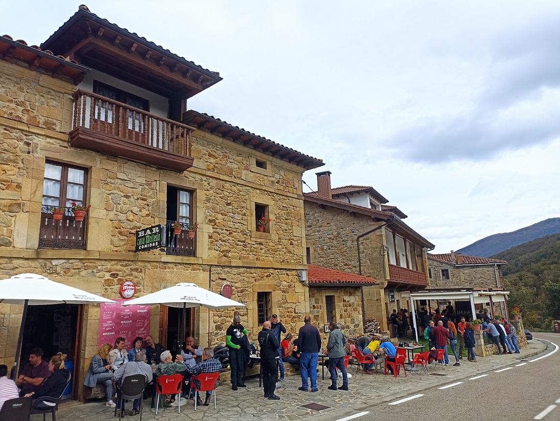 No lo teníamos previsto, pero al pasar por la pequeña aldea de Pejanda, que tiene una antigua posada-bar al pie de la carretera, vimos que había una especie de fiesta montada, con un grupo de música regional y todo, así que hicimos una parada más. El sitio se llama casa Molleda.