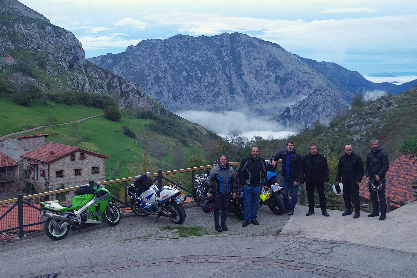 Y llegamos a Tresviso, donde el que parecía ser el único bar del pueblo nos estaba esperando con los brazos abiertos y cerveza bien fria, al lado de un mirador donde se seguía viendo el mar de nubes, esta vez hacia la zona del desfiladero de la Hermida, que tendríamos que hacer al día siguiente para volver a tierras castellanas. Aparcamos las motos y nos sentamos en la terraza que nos tenían preparada, como si nos estuvieran esperando. El día iba a morir mientras nos tomábamos esa cerveza, la vuelta a Sotres ya sería de noche.