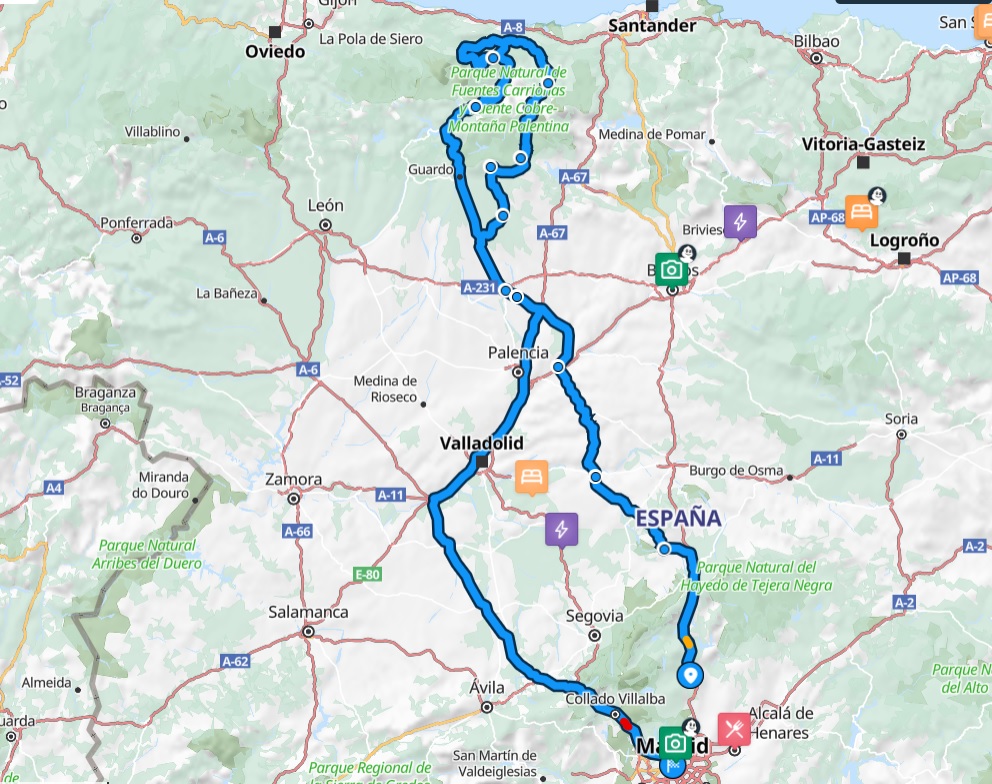 - Día 1: Desde Cotos de Monterrey hasta Carrión de los Condes, parando en Sepúlveda, Peñafiel y Torquemada. Unos 243 km.
