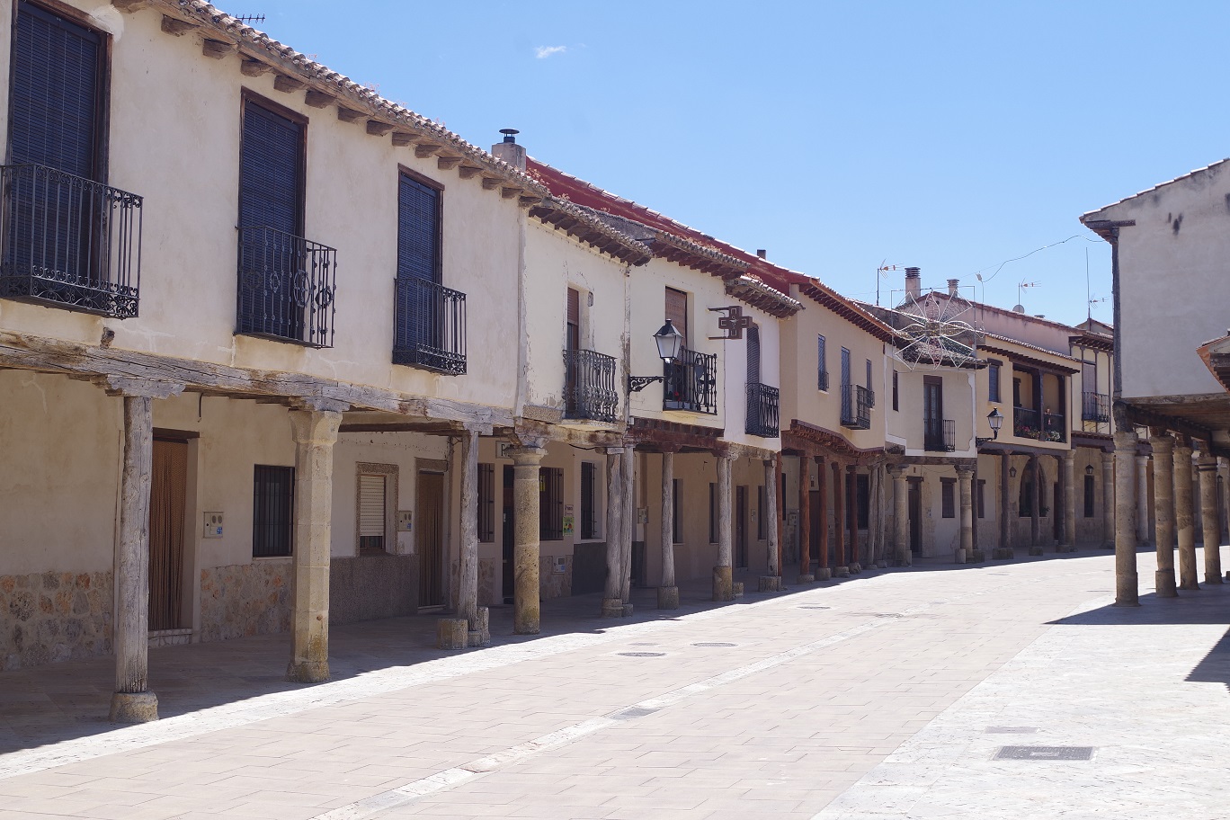 Nada más bajar de Somosierra, nos desviamos en Cerezo de Abajo por la carretera provincial que va directa hasta Cuéllar. Es una carretera con unas buenas vistas hacia la sierra, a la izquierda, y un agradable paisaje campestre. Es bastante recta y se puede ir ligero. En Cuéllar, a 86 km de la parada en Somosierra, paramos de nuevo en una terraza con vistas al enorme castillo, que en los últimos años lo han rodeado con un muro que estropea completamente la vista.