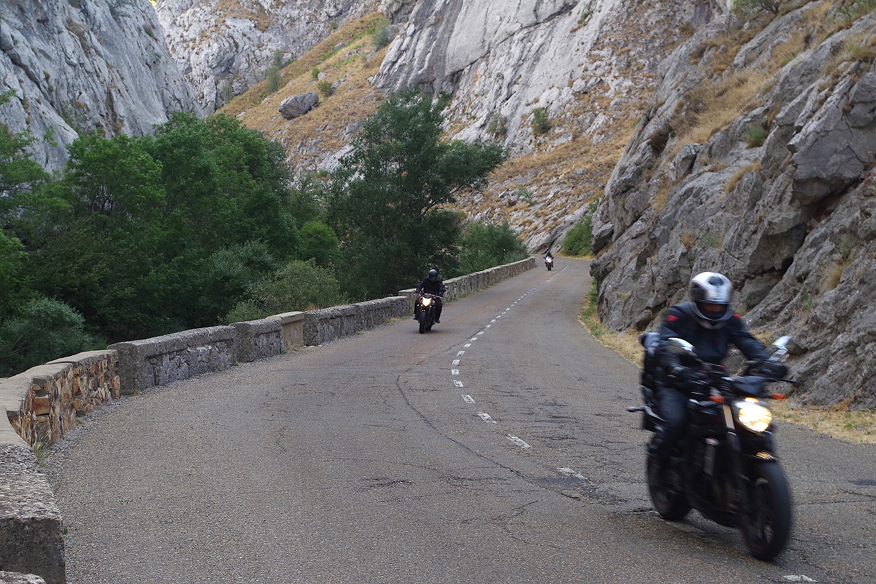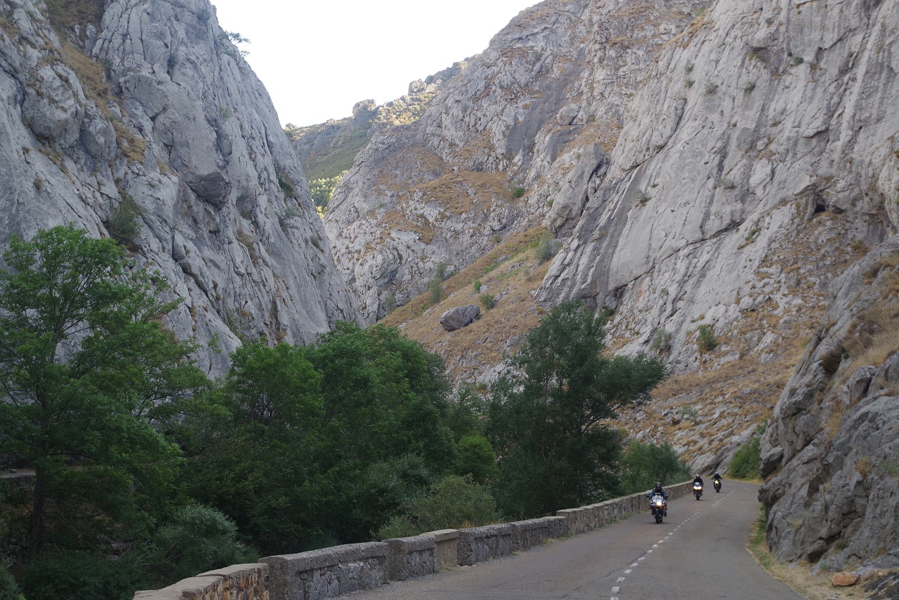 Ahora después de comer tocaba avanzar terreno, además esta zona no tiene realmente valor paisajístico, y cuanto antes se pase, mejor. Hicimos unos 120 km del tirón hasta, una vez pasado ya León, llegar a la entrada de las hoces de Vegacervera, un corto tramo de carretera que discurre por el interior de un desfiladero espectacular.