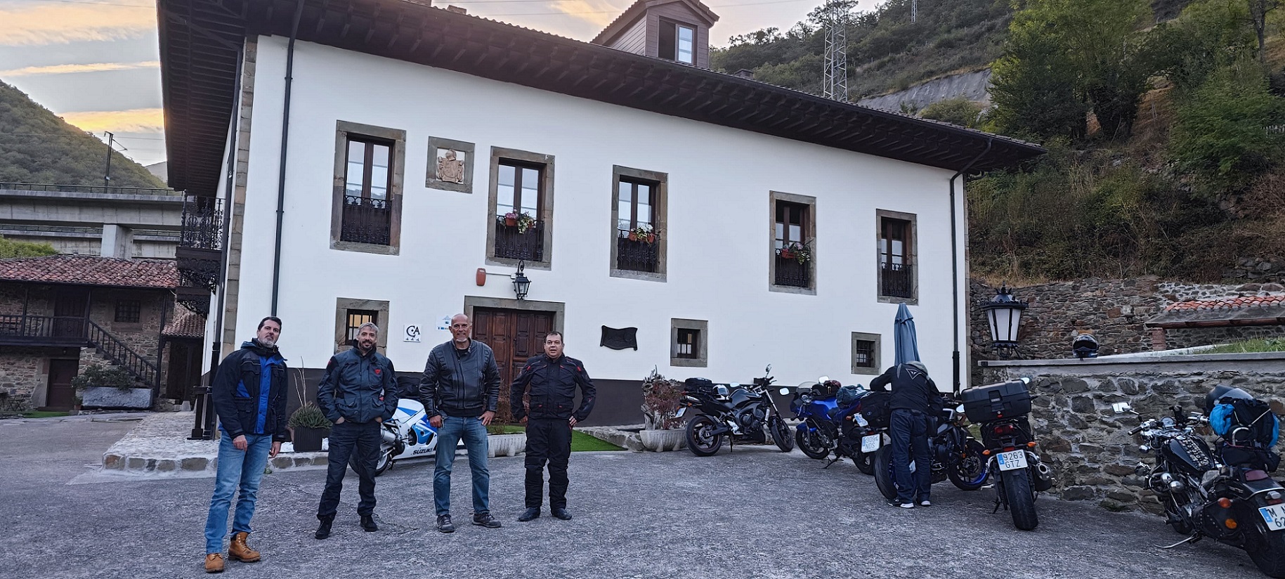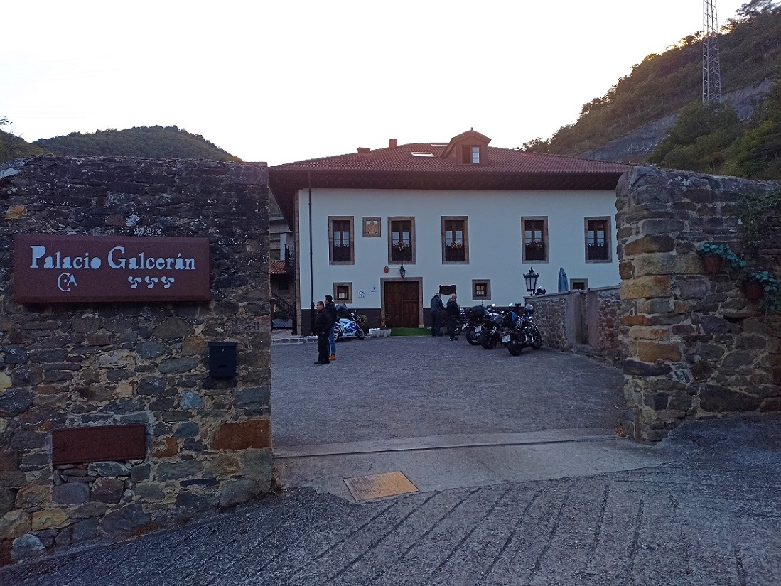 Y ya desde allí, con el sol que le quedaba poco para empezar a ocultarse, fuimos del tirón hasta nuestro alojamiento de ese día, el hotel Palacio de Galcerán, situado en Sotiello, cerca de Campomanes. Tan solo estábamos a 26 km de allí, solo tuvimos que llegar a la cima de Pajares, y ya en Asturias, bajarlo hasta Campomanes, en el cruce con la autopista AP-66. La bajada del puerto por el lado asturiano es mucho más espectacular que la subida desde el lado leonés, es un puerto realmente revirado y con mucho desnivel. Una vez en Campomanes, en apenas 3 km estamos ya en la señorial casona donde íbamos a pasar la noche.