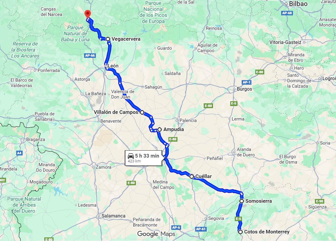 Por fin llegó el momento de comenzar este esperado viaje a la parte más salvaje y desconocida de Asturias. La primera etapa iba a ser bastante larga, así que para aprovechar el tiempo y evitar el calor, quedamos temprano, a las 8:30 en la gasolinera de Cotos de Monterrey, en el km 48 de la A-1.