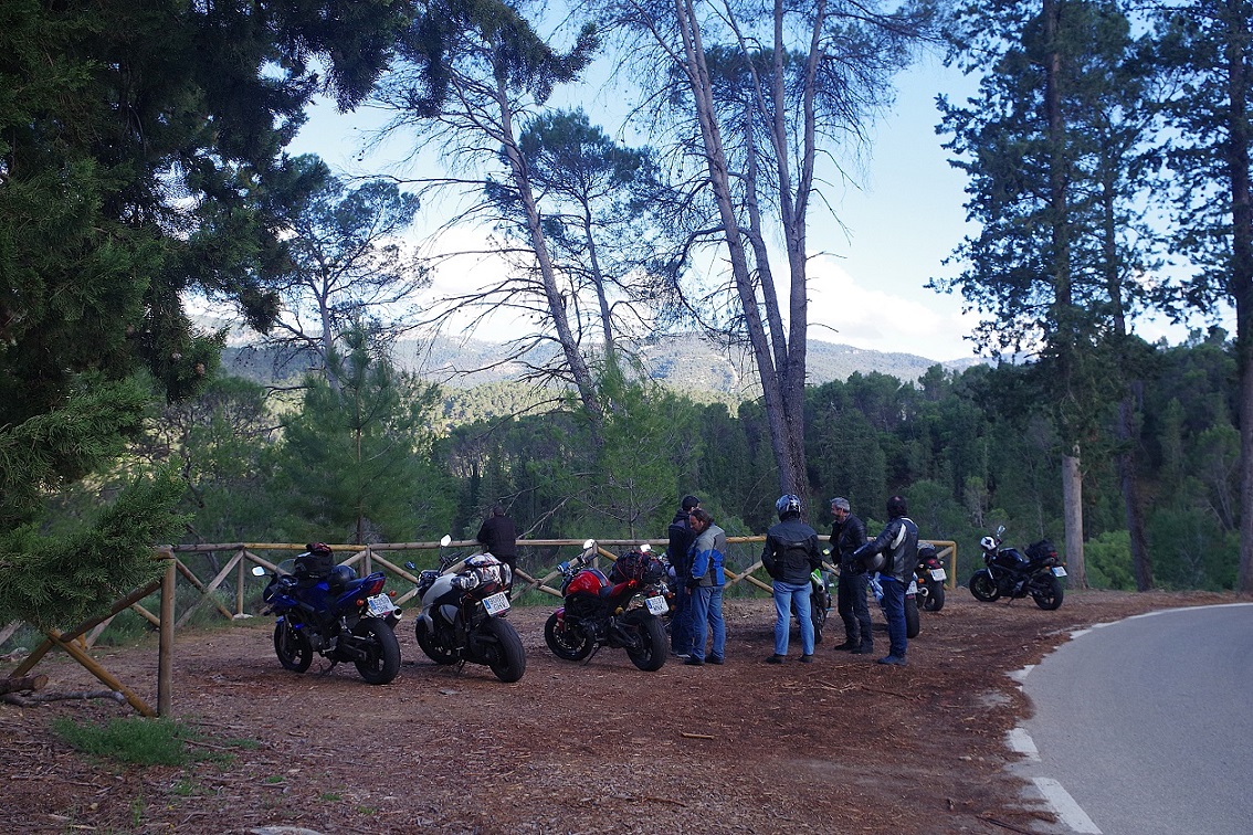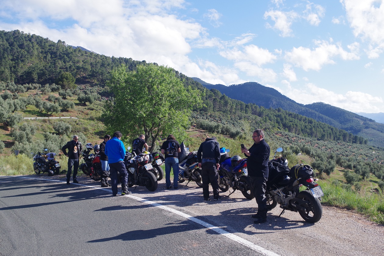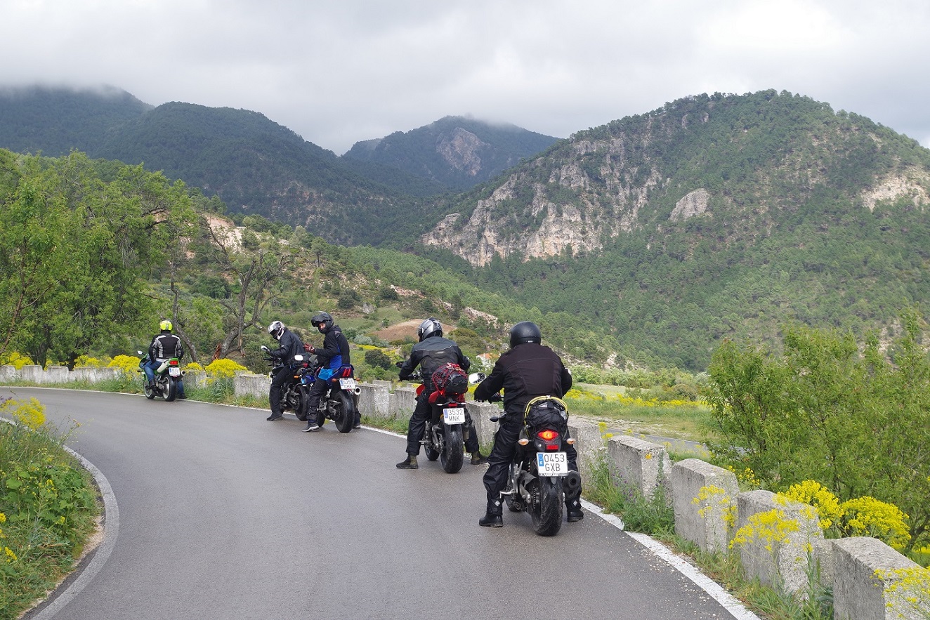 Y de nuevo dejó de llover. Esta vez sí que parecía que iba más en serio, ya que incluso se empezó a ver tímidamente el sol. De nuevo a las motos, había que aprovechar. Estábamos ya muy cerca de la entrada a la sierra de Cazorla, Segura y las Villas, que teníamos que atravesar completamente de norte a sur para llegar al alojamiento que teníamos reservado. Abajo, fotos bajando desde Riopar Viejo hacia el valle.