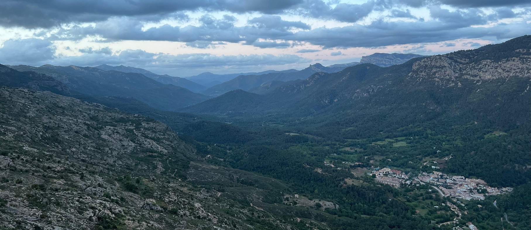 Y el final de todo este valle lo marca la subida al puerto de Las Palomas. Al pie de esta subida hay unos cuantos alojamientos que la verdad habrian sido muy buena opción en vez de llegar hasta el pueblo de Cazorla. Arriba a la derecha y abajo, fotos en lo alto del puerto, al que llegamos aún con luz. En la foto de abajo se ve todo el valle del Guadalquivir que forma la columna vertebral del parque natural de Cazorla, y que habíamos recorrido desde su extremo norte, en Siles, hasta aquí.