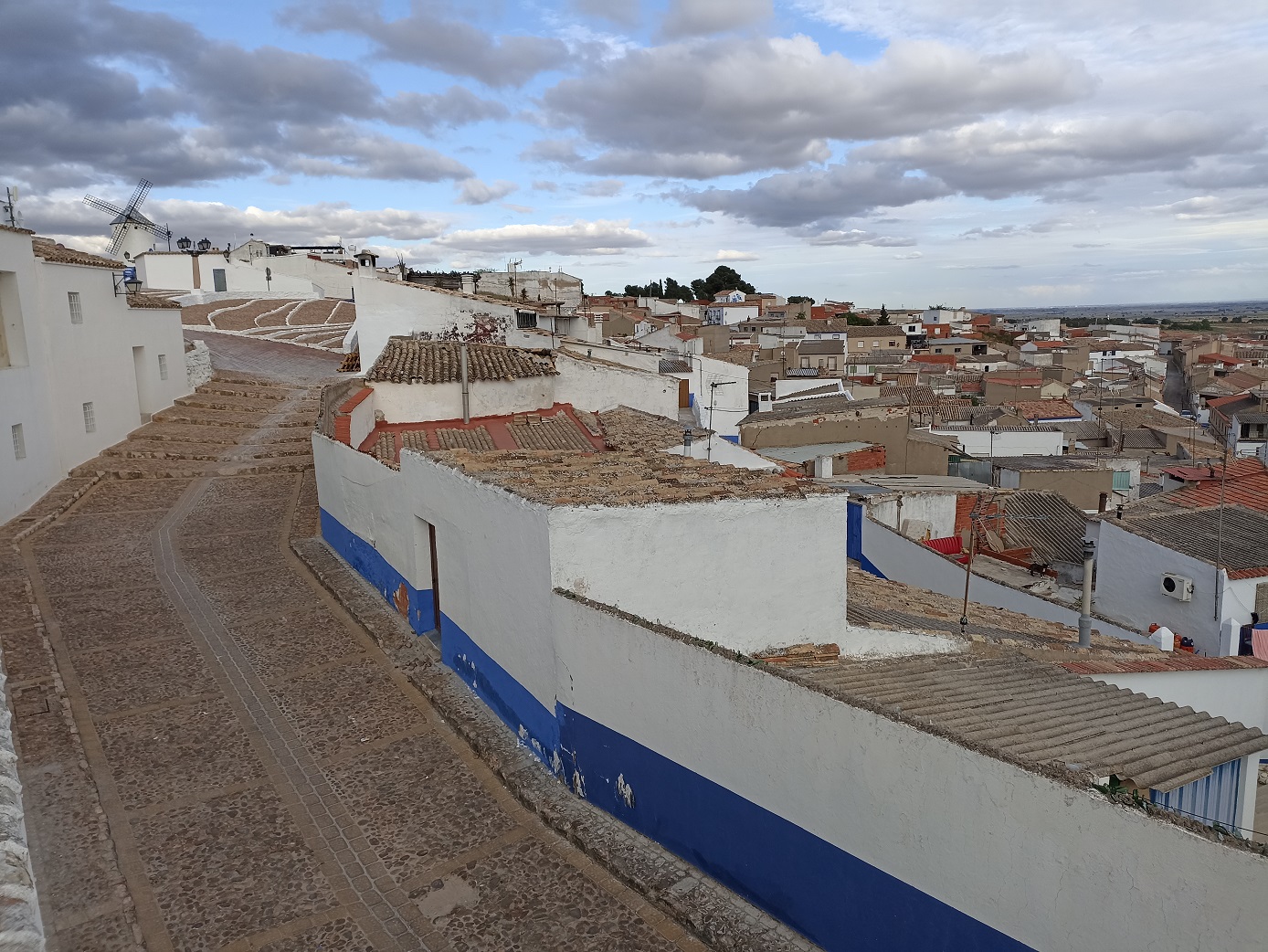 Fuimos por la autovía lo mínimo imprescindible, hasta Ocaña. Allí la abandonamos y el resto del tiempo fuimos por carreteras comarcales, pasando por Lillo y La Villa de Don Fadrique, hasta llegar a Campo de Criptana. Una vez en el pueblo, fuimos directos hasta la zona de los molinos de viento, una imagen bastante típica de esta zona manchega, y además justo al lado había un bar que nos vino al pelo, llamado "Las Musas".
