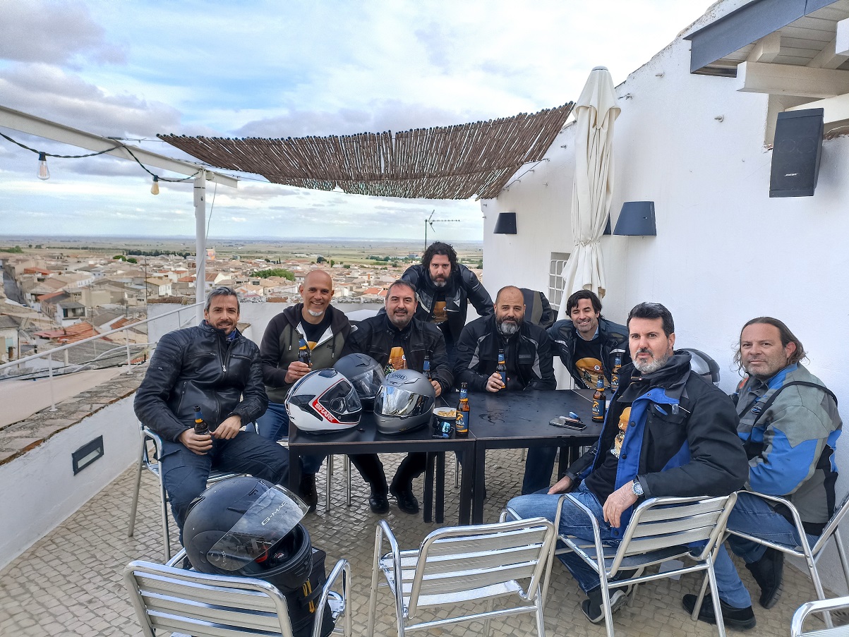 Y después de las fotos, un poco de charla, cerveza y queso manchego en la fantástica terraza del bar-restaurante que hay junto a los molinos.