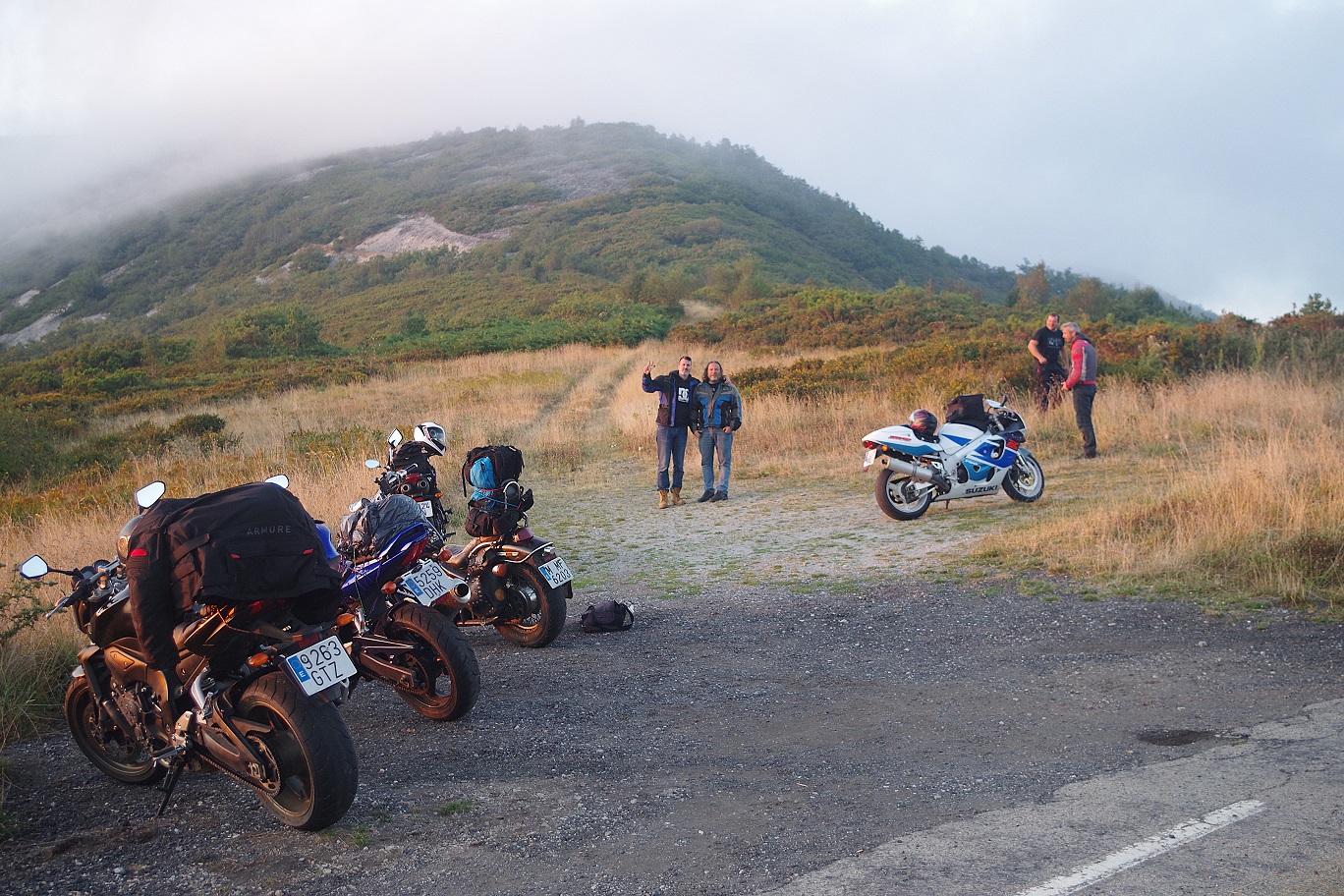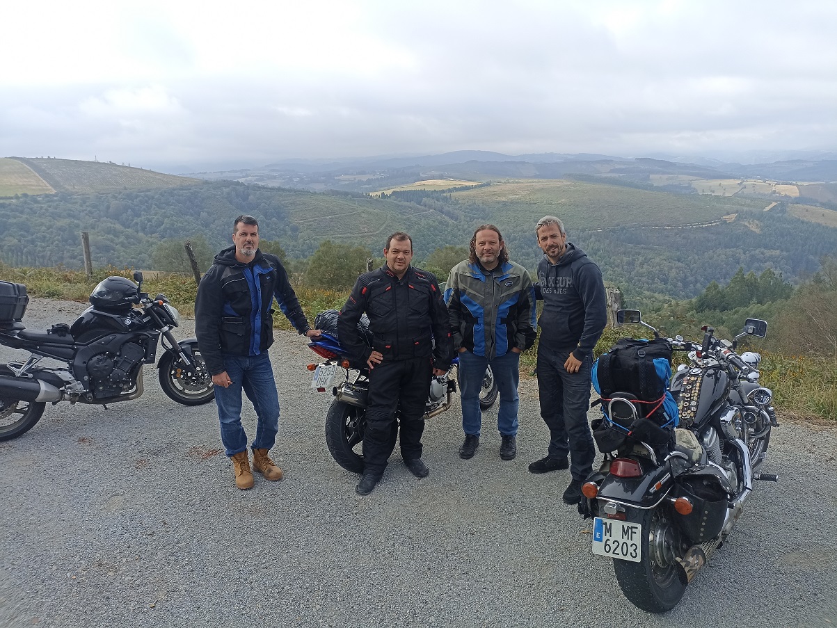 A partir de aquí, la ruta ya es totalmente de montaña. Al poco de dejar Castroverde atrás, subimos un pequeño puerto de montaña, Alto da Fontaneira, donde hicimos una breve parada (foto de abajo a la izquierda). Al pasar A Fonsagrada, el terreno se vuelve aún más montañoso y espectacular. En la zona en que cambiamos de Galicia a Asturias hacemos una parada en un mirador sobre el valle del rio Navia, que son las otras tres fotos de abajo. Toda esta carretera desde A Fonsagrada es muy espectacular para hacer en moto, y muy solitaria también.