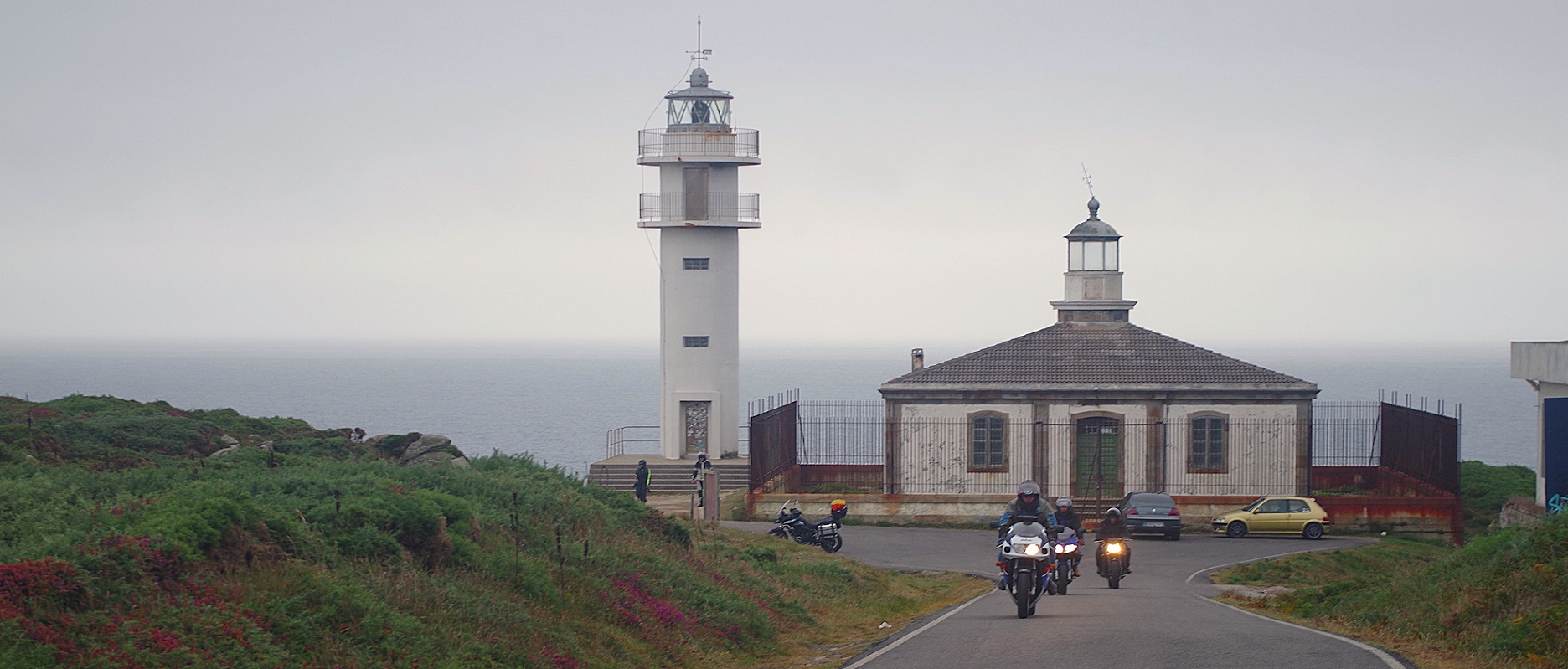 Abajo, fotos de las motos en la puerta de nuestro alojamiento, casa Luz. Un sitio con mucho encanto, donde dormimos y desayunamos muy bien. Lires está en el fondo de una pequeña ria, y hay un camino que lleva hasta la playa, pero no teníamos tiempo. Después de desayunar, nos pusimos en marcha que teníamos un largo día por delante.