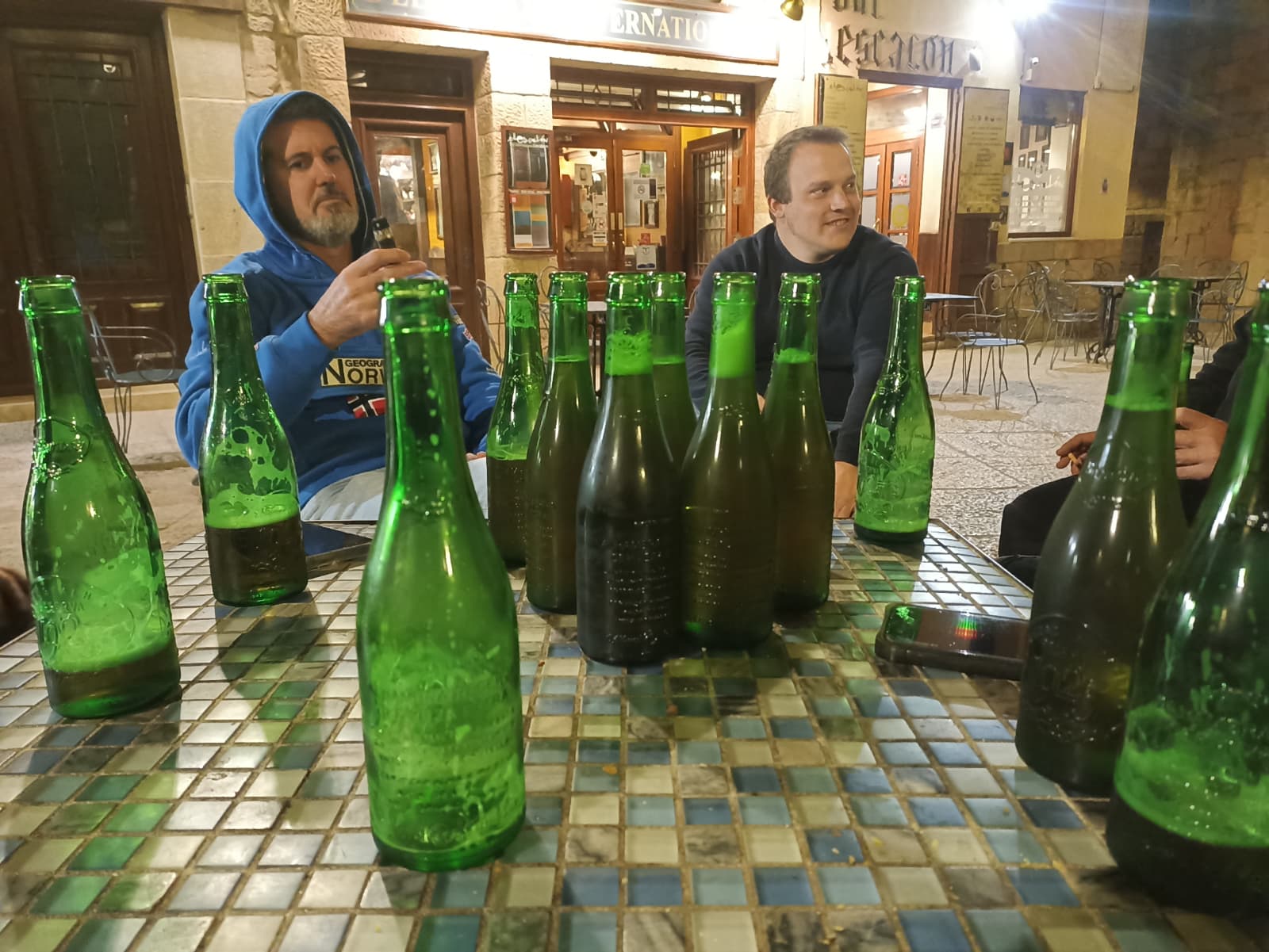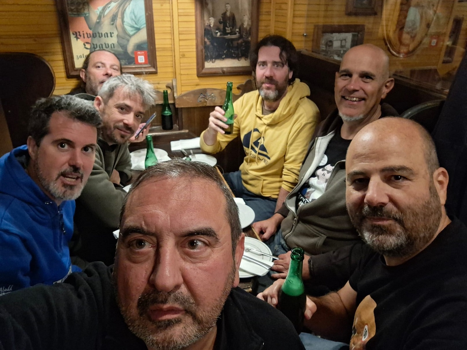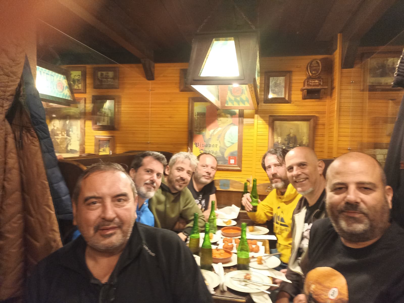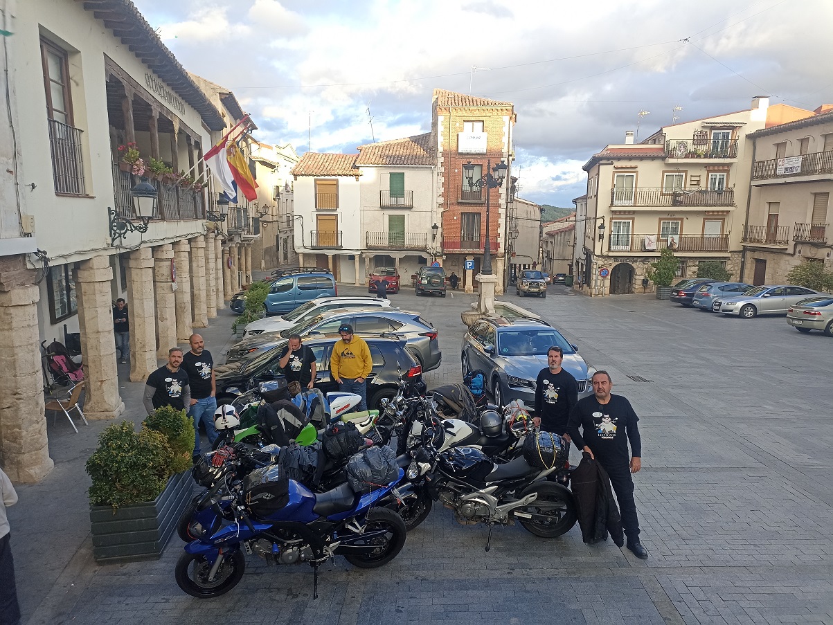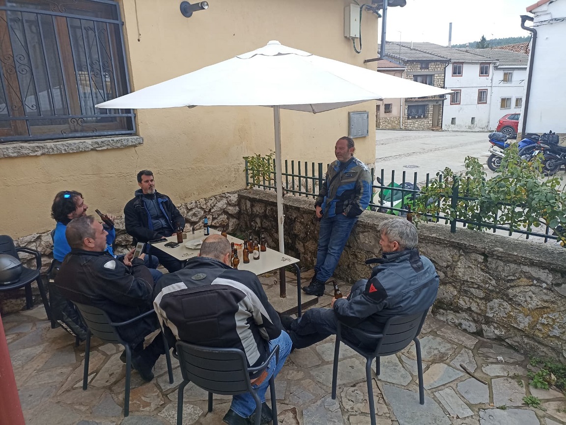 Este viaje era hacia el este, así que en esta ocasión el sitio de quedada general fue la plaza de Horche, un pueblo cerca de Guadalajara, donde hay un bar en el que ya hemos estado en alguna que otra ocasión. Los primeros en llegar fueron Darío y Carlos, y cuando por fin nos juntamos todos, un poco más tarde de lo planeado, nos tomamos una última ronda todos juntos.